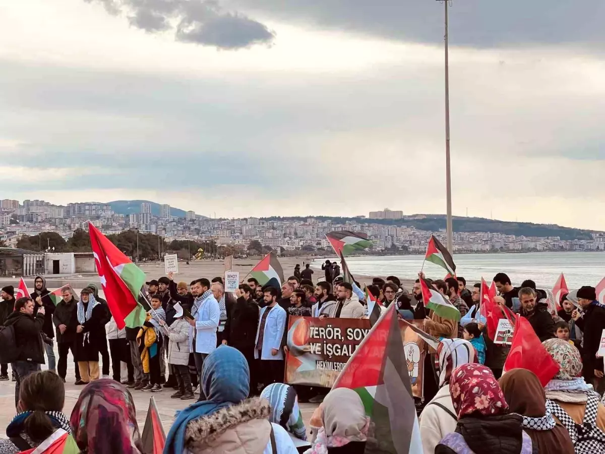Samsun'da sağlık çalışanları, Gazze'deki katliamı protesto etmek için sessiz yürüyüş düzenledi.