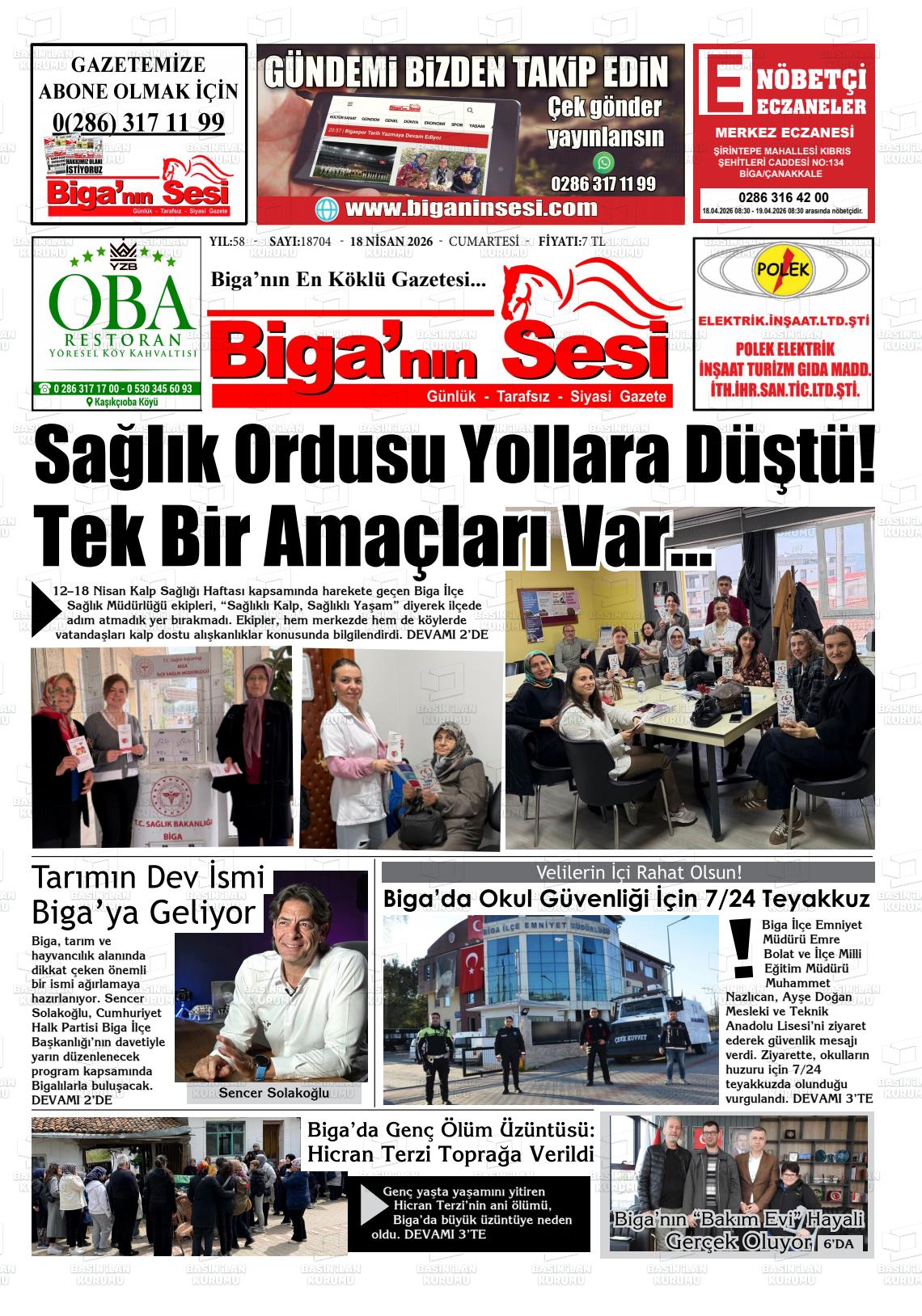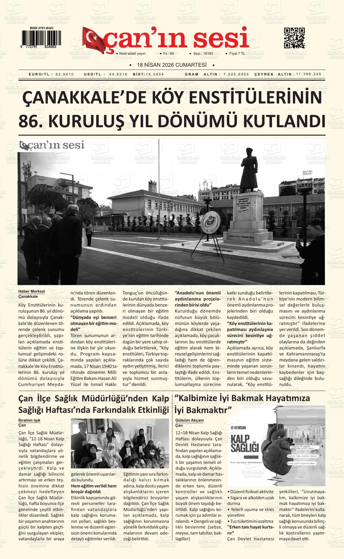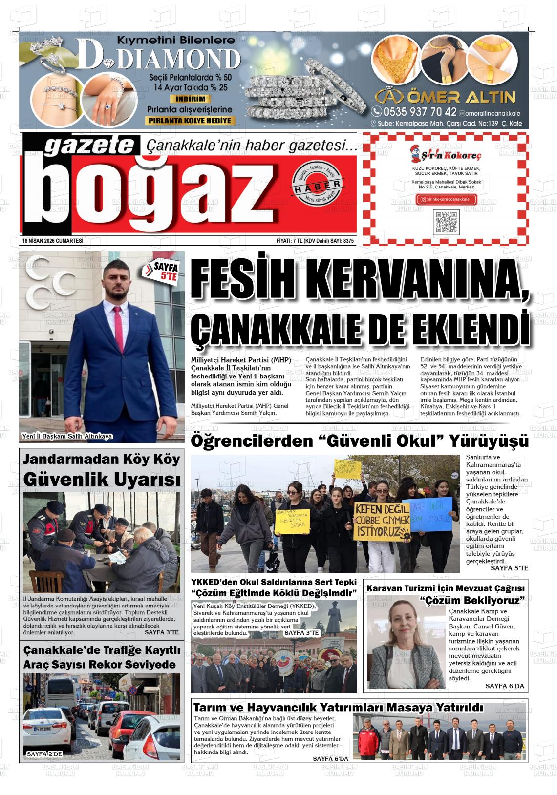 Çanakkale Yerel Gazeteleri 18 Nisan 2026, Cumartesi Günü Manşeti