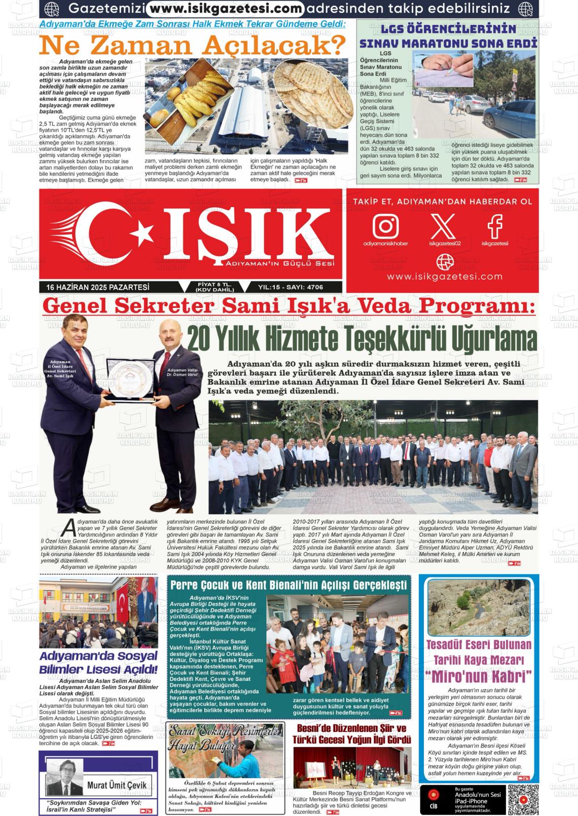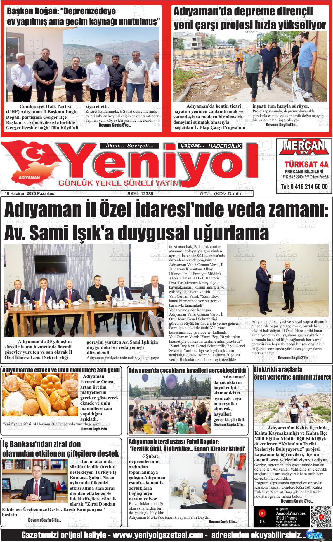 Adıyaman Yerel Gazeteleri 18 Nisan 2026, Cumartesi Günü Manşeti