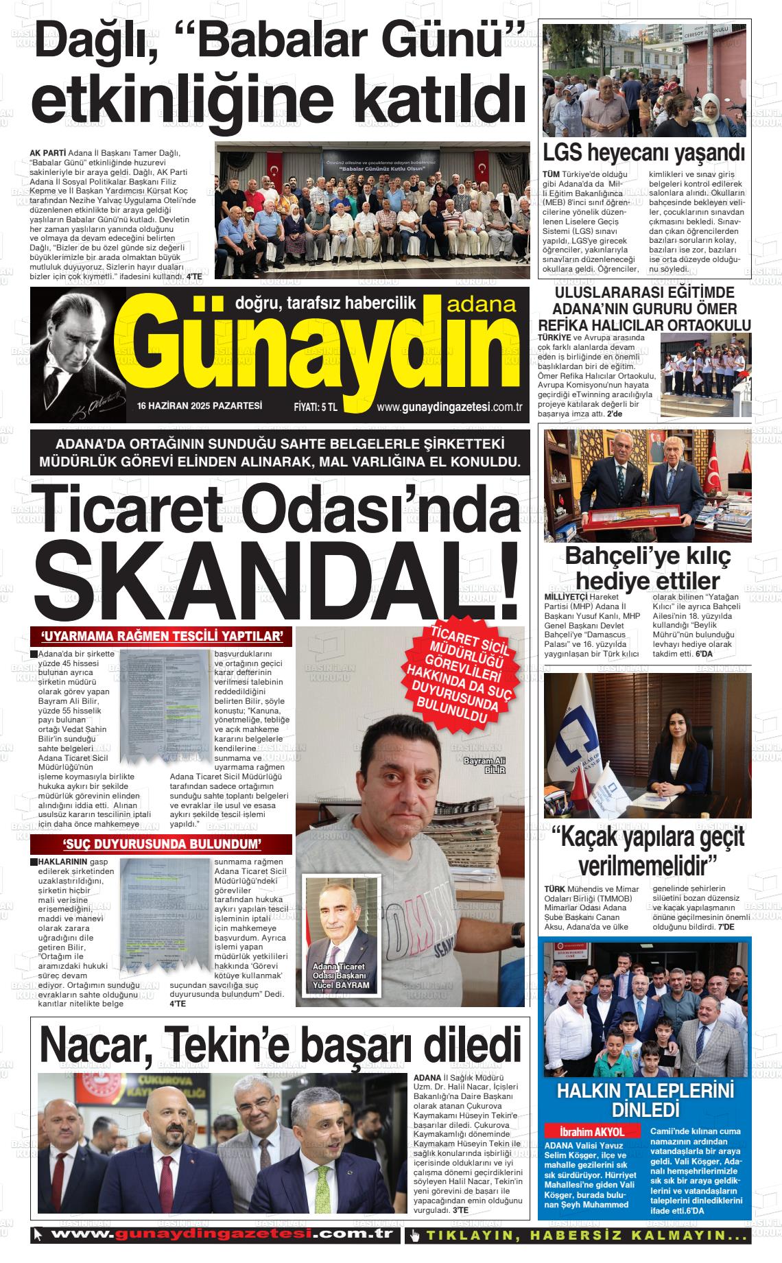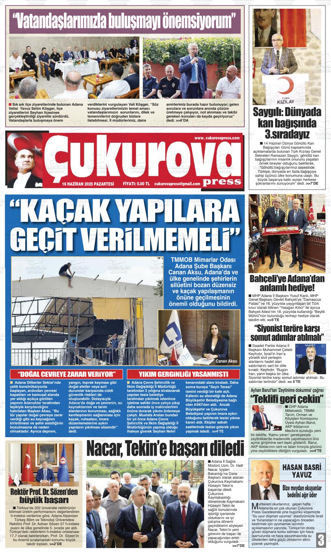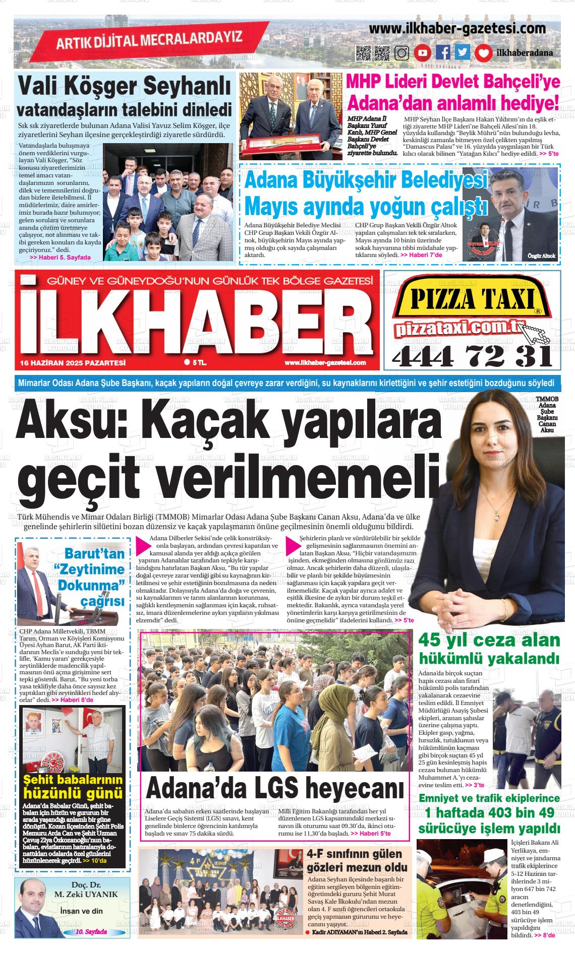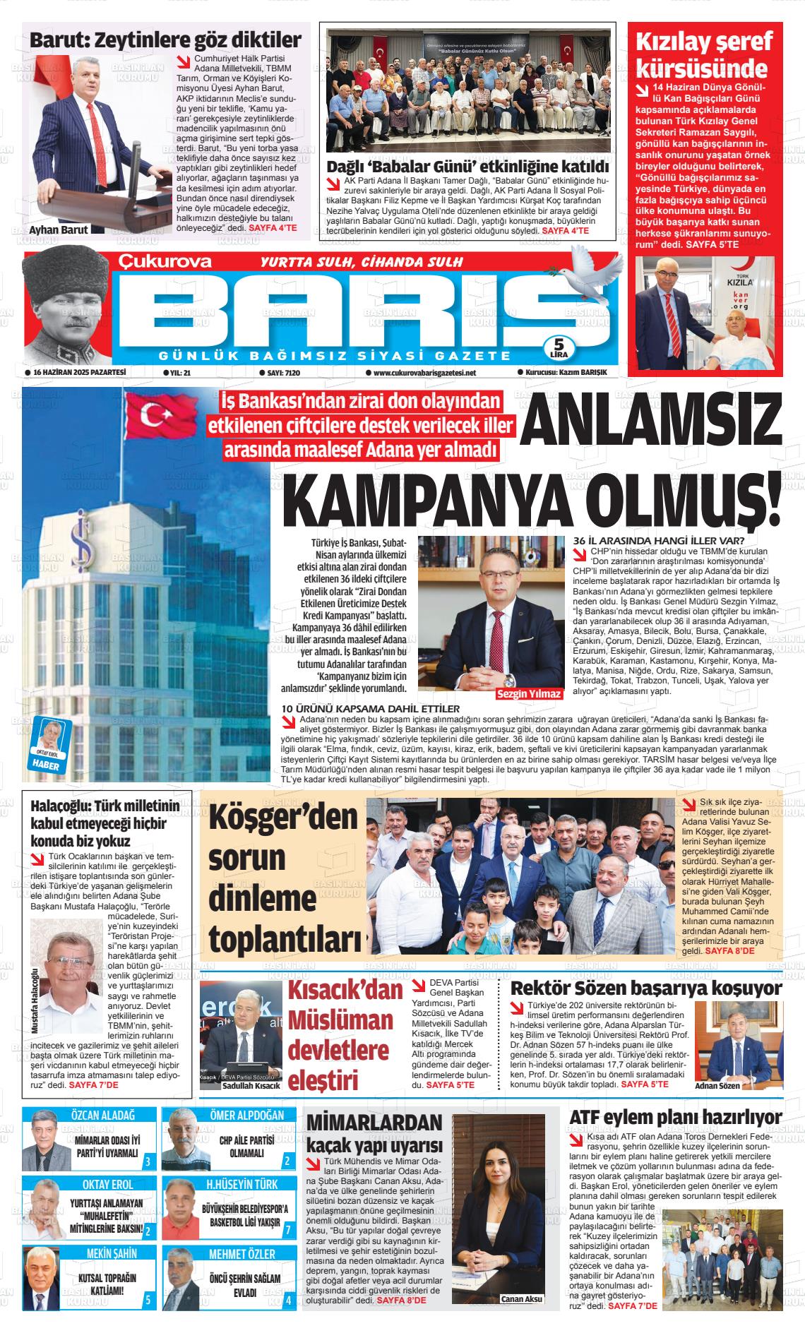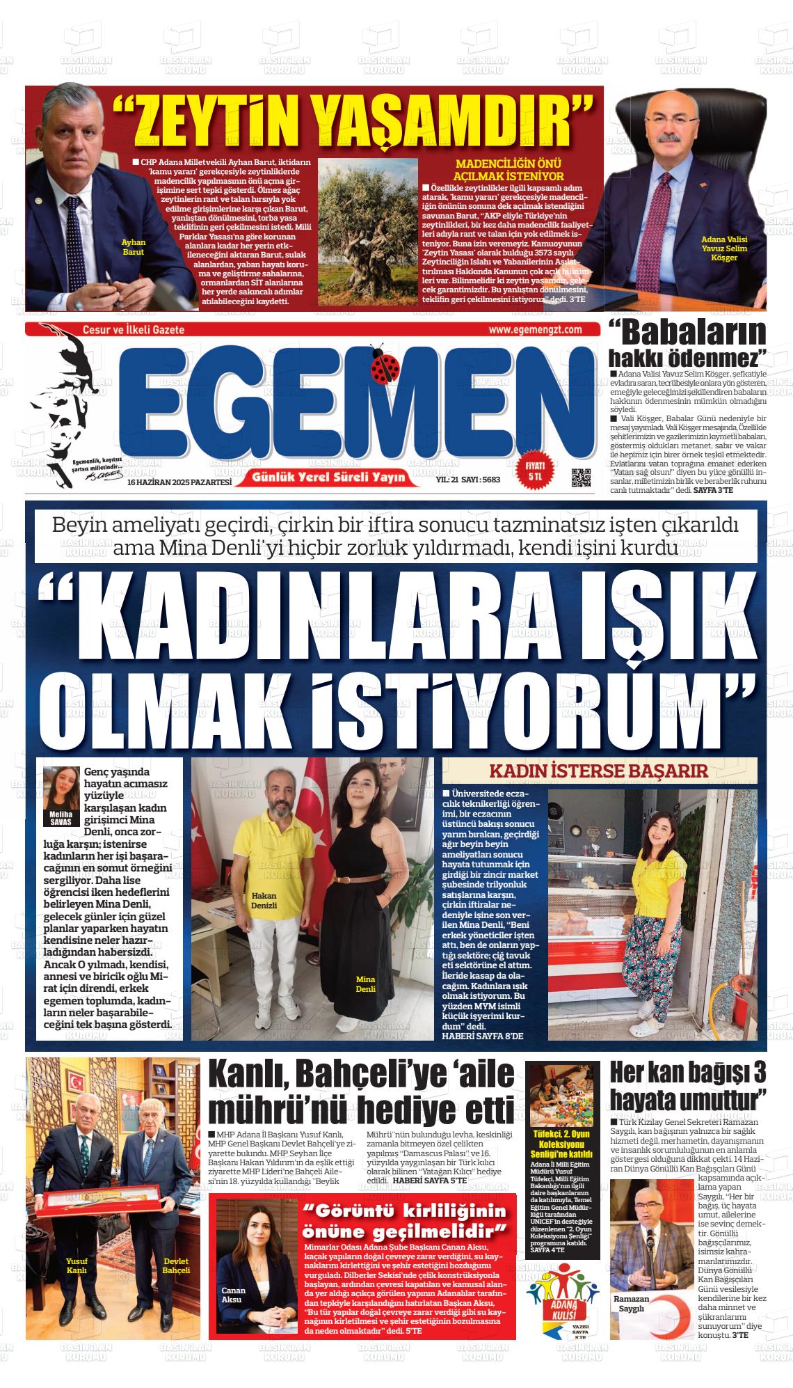 Adana Yerel Gazeteleri 18 Nisan 2026, Cumartesi Günü Manşeti