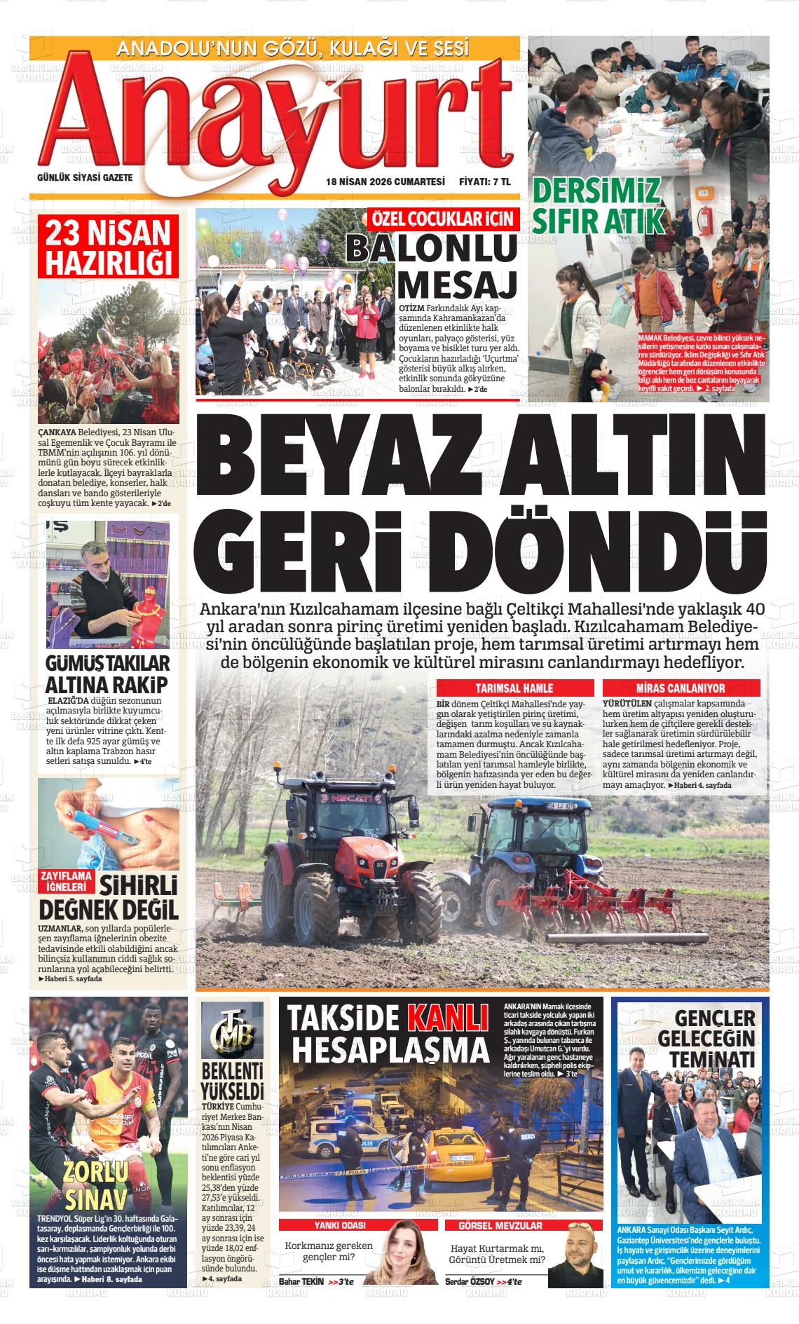 Ankara Yerel Gazeteleri 18 Nisan 2026, Cumartesi Günü Manşeti