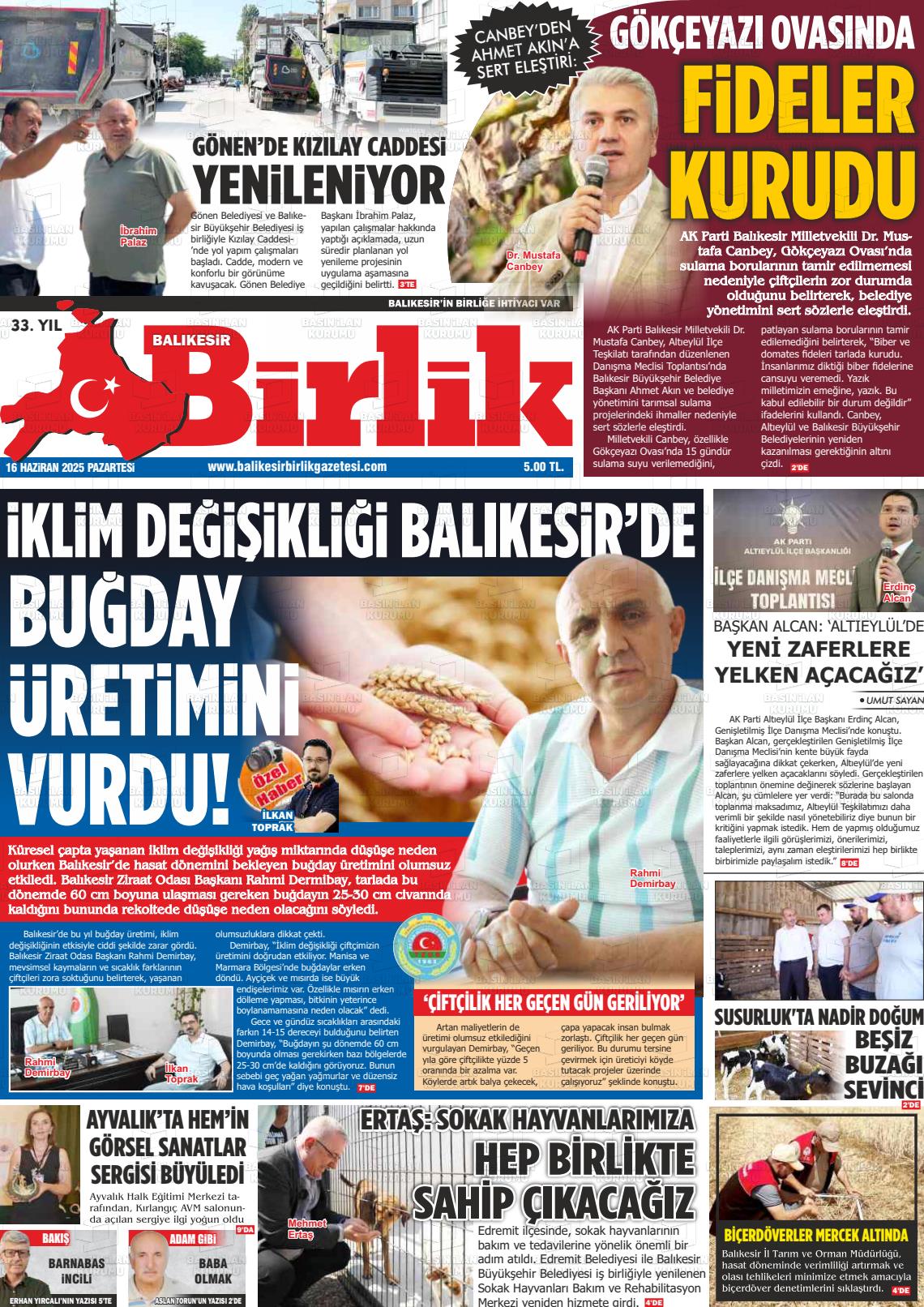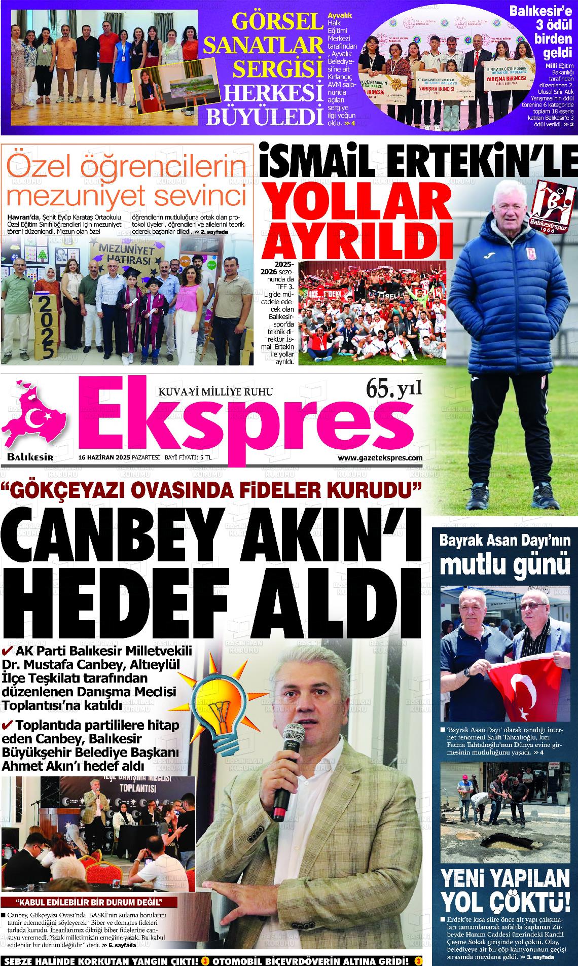 Balıkesİr Yerel Gazeteleri 18 Nisan 2026, Cumartesi Günü Manşeti