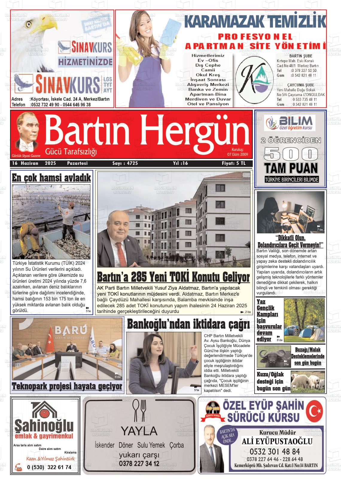 Bartın Yerel Gazeteleri 18 Nisan 2026, Cumartesi Günü Manşeti