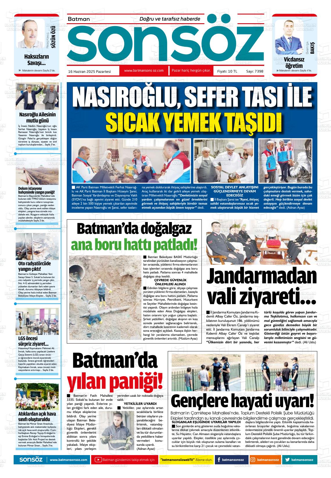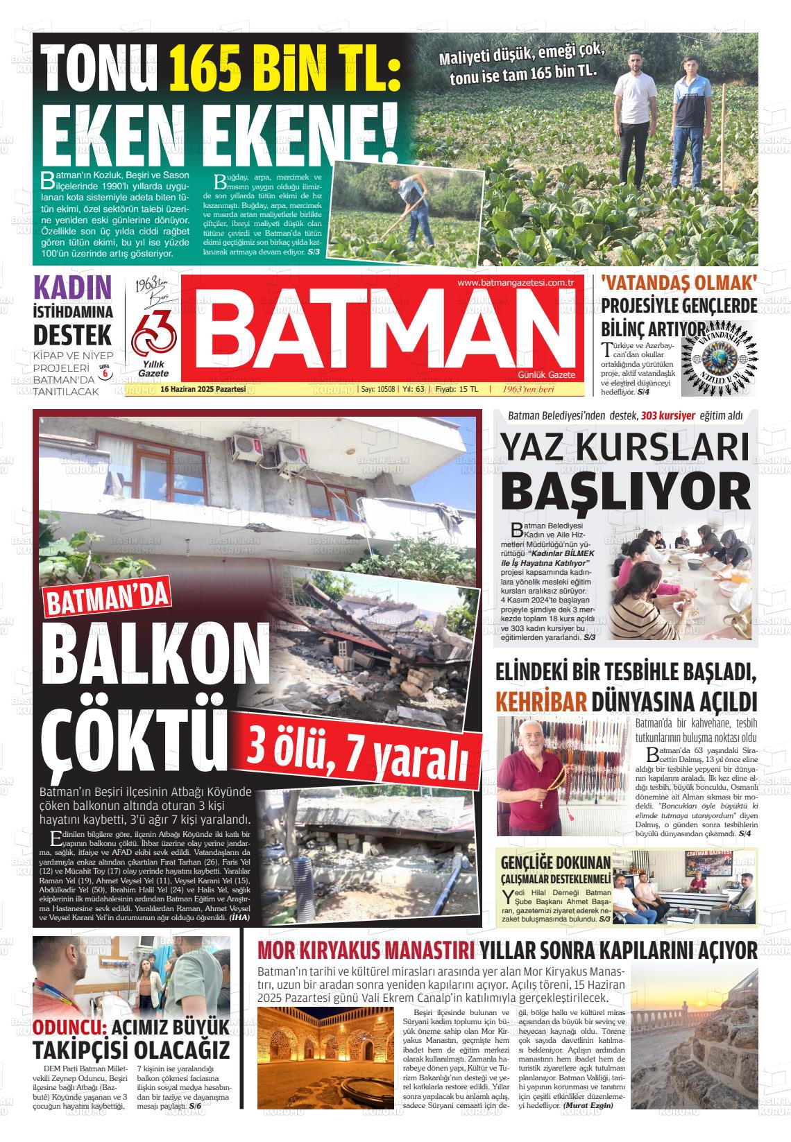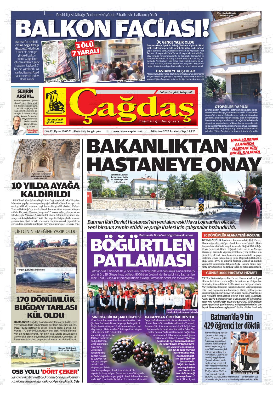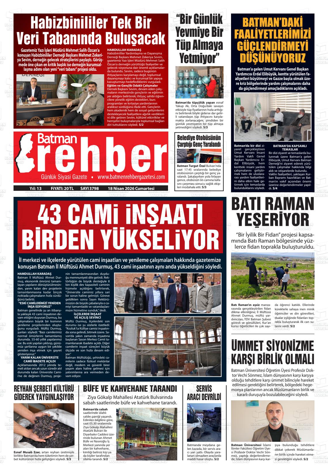 Batman Yerel Gazeteleri 18 Nisan 2026, Cumartesi Günü Manşeti
