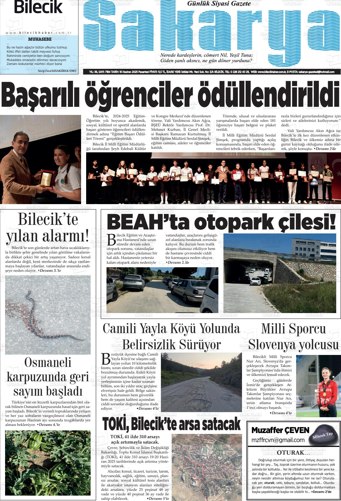 Bİlecİk Yerel Gazeteleri 18 Nisan 2026, Cumartesi Günü Manşeti