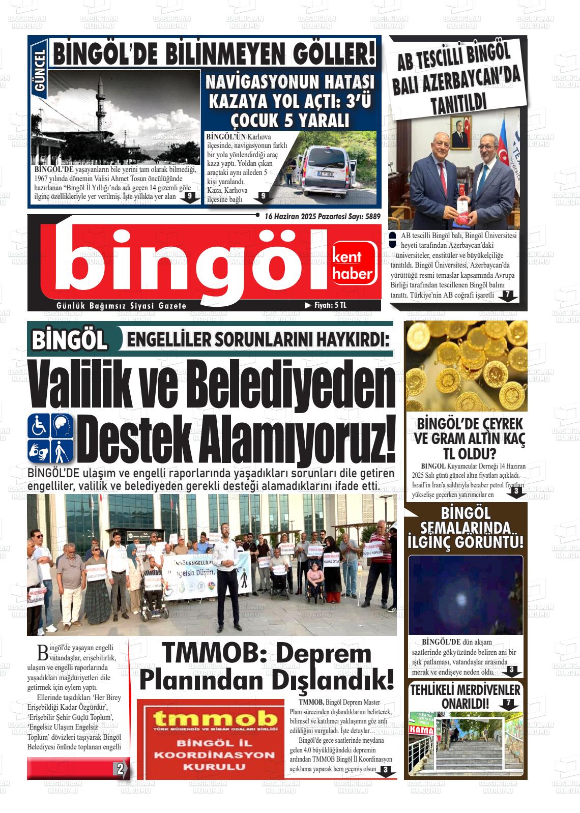 Bİngöl Yerel Gazeteleri 18 Nisan 2026, Cumartesi Günü Manşeti