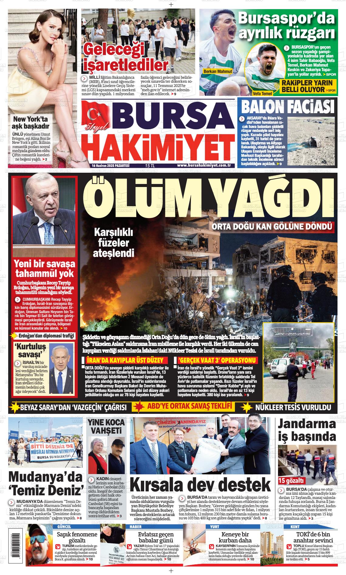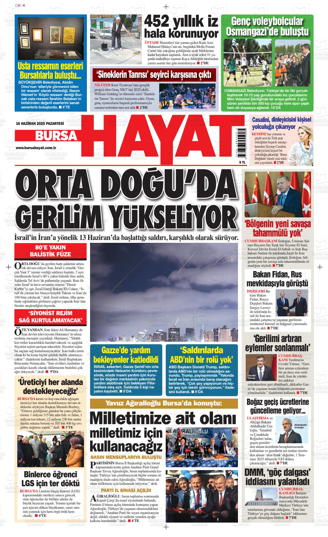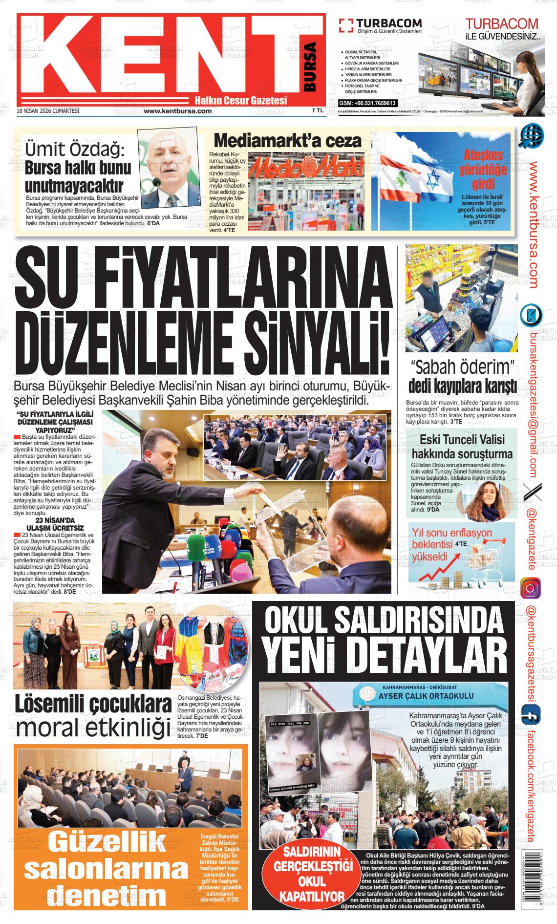 Bursa Yerel Gazeteleri 18 Nisan 2026, Cumartesi Günü Manşeti