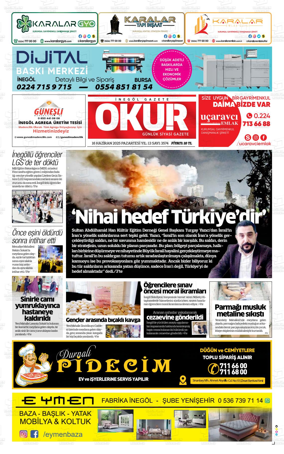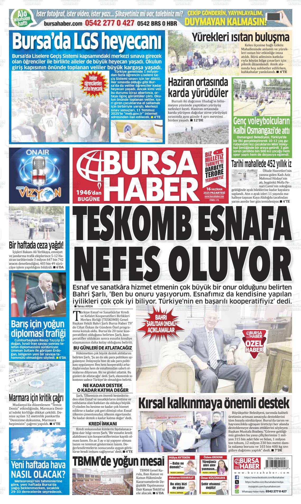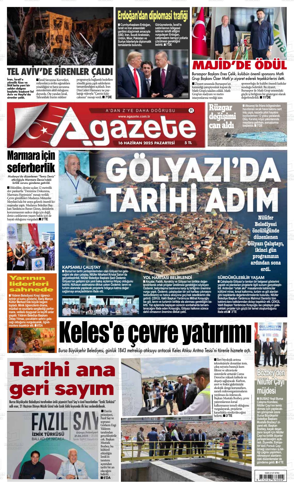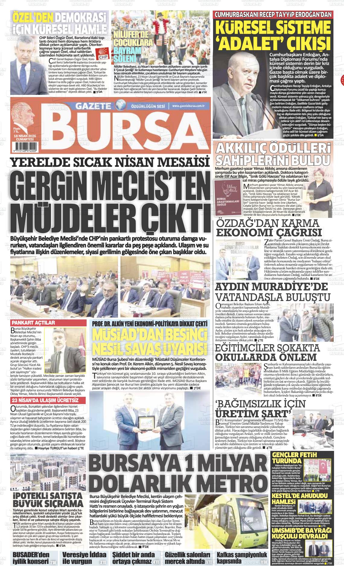 Bursa Yerel Gazeteleri 18 Nisan 2026, Cumartesi Günü Manşeti