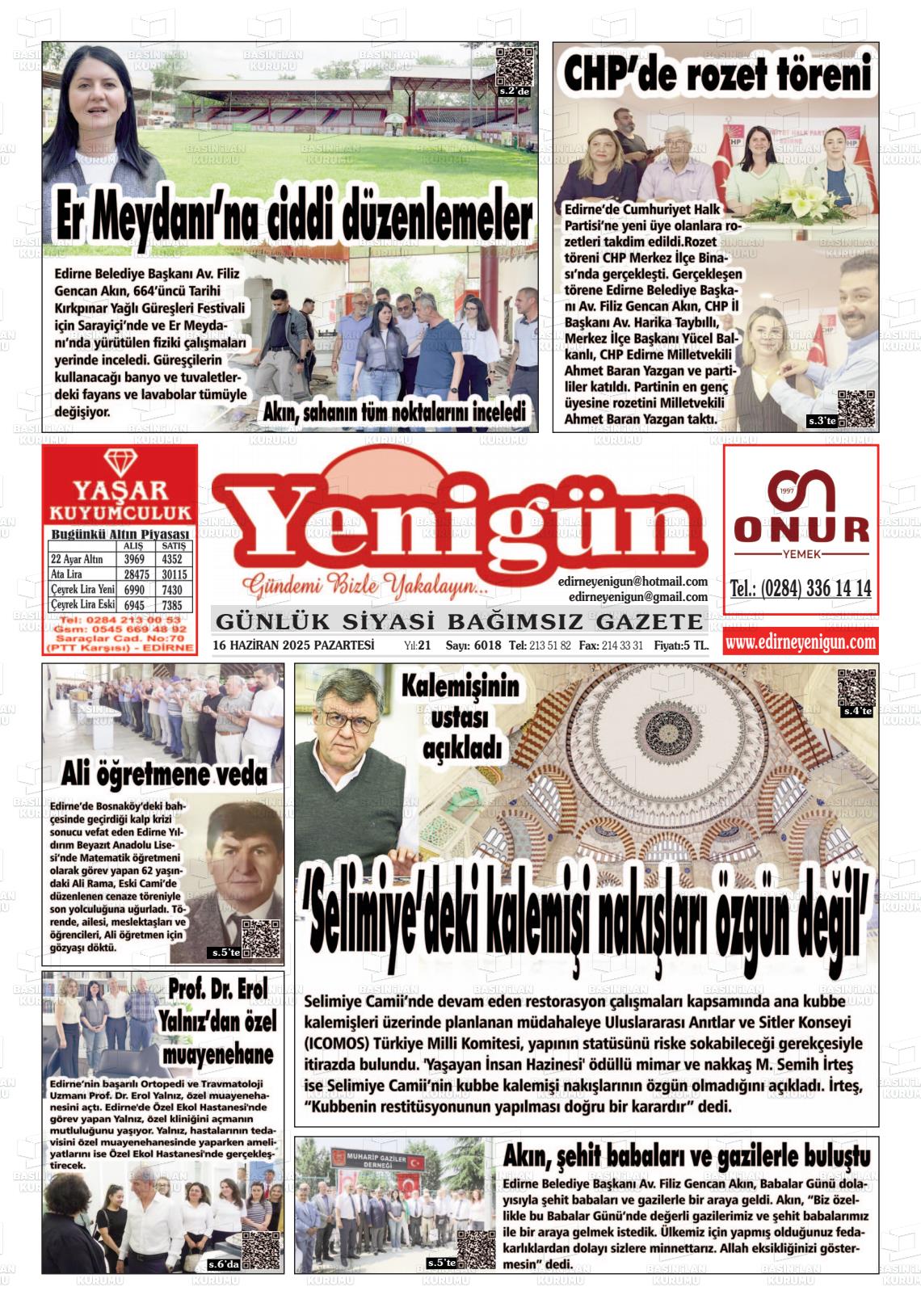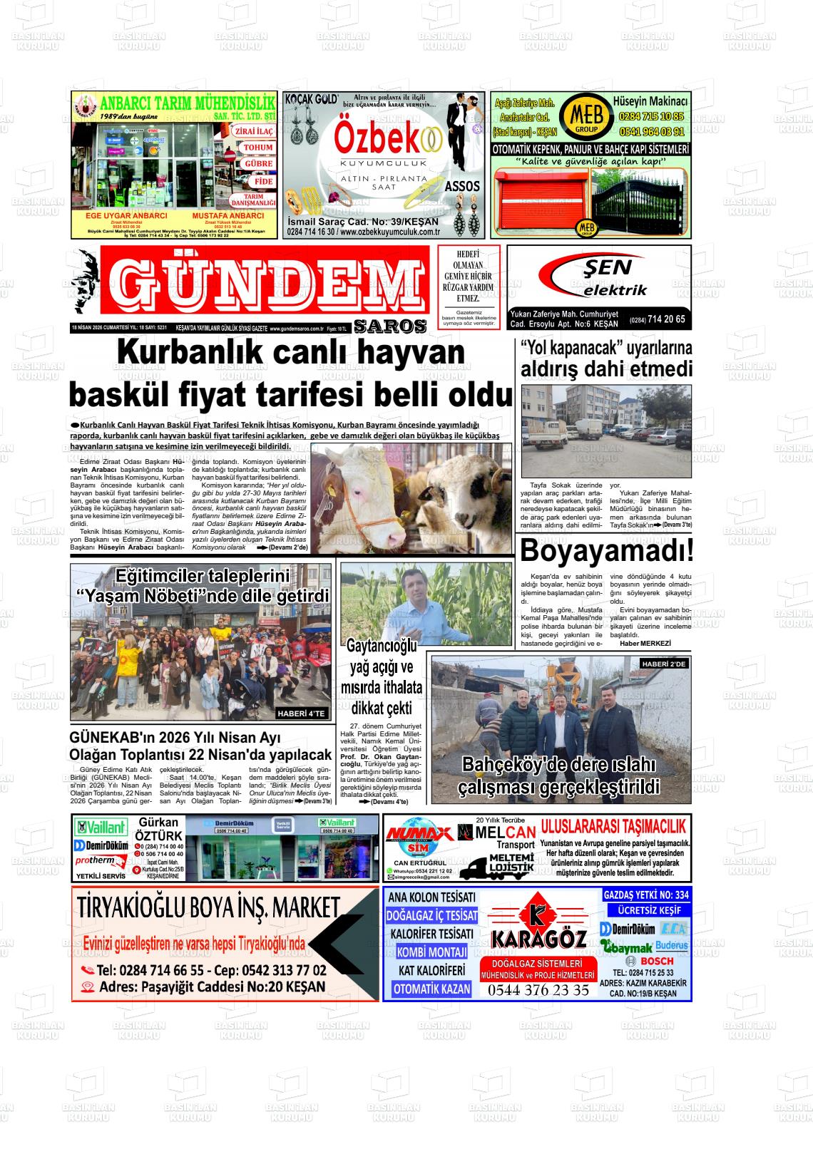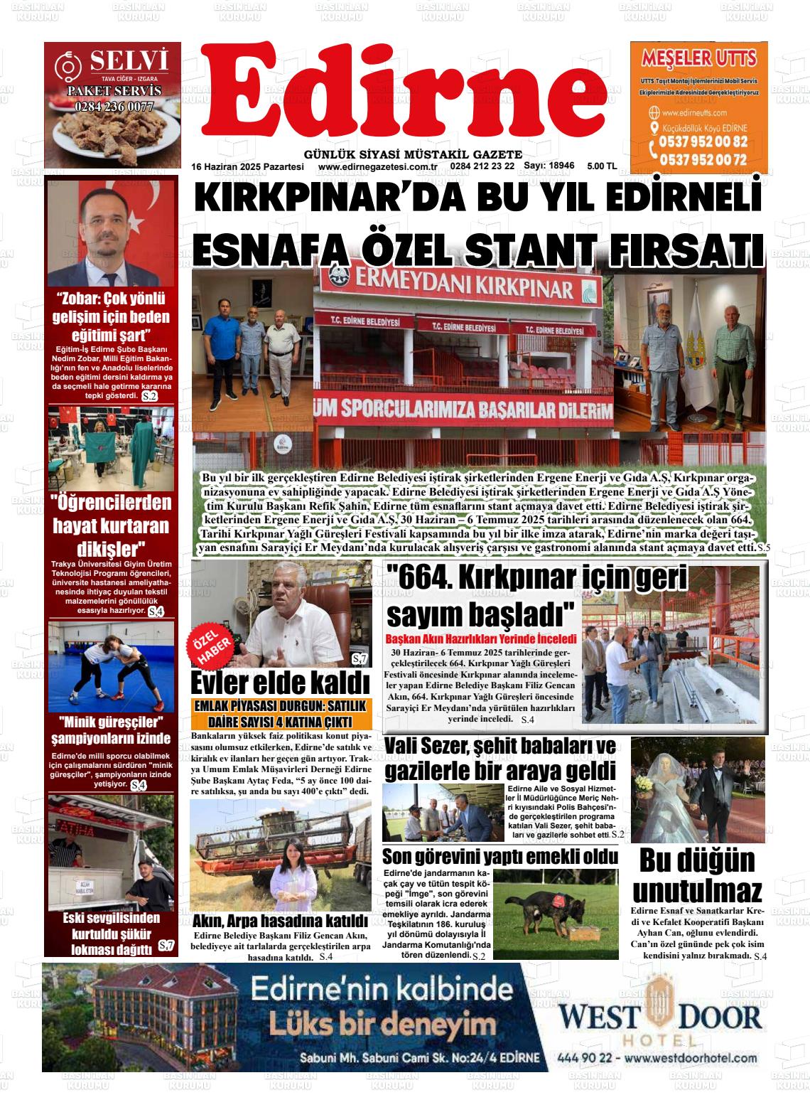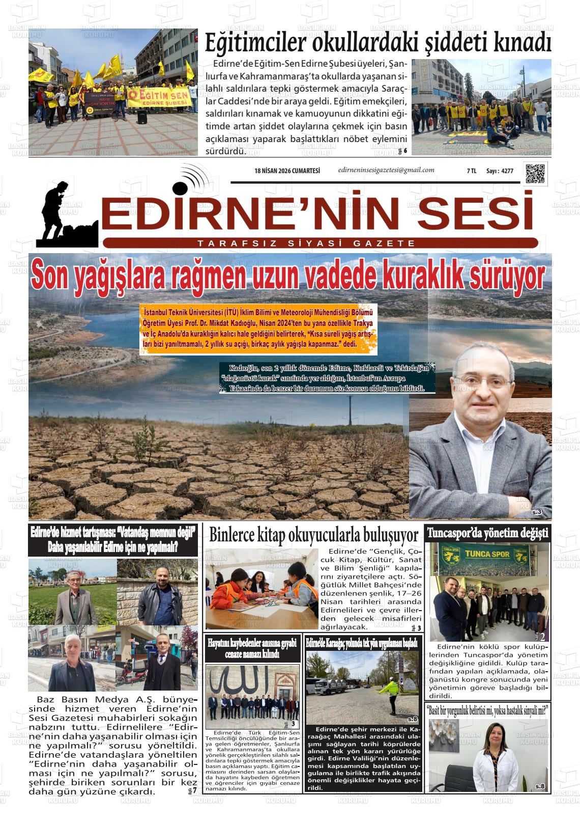 Edİrne Yerel Gazeteleri 18 Nisan 2026, Cumartesi Günü Manşeti