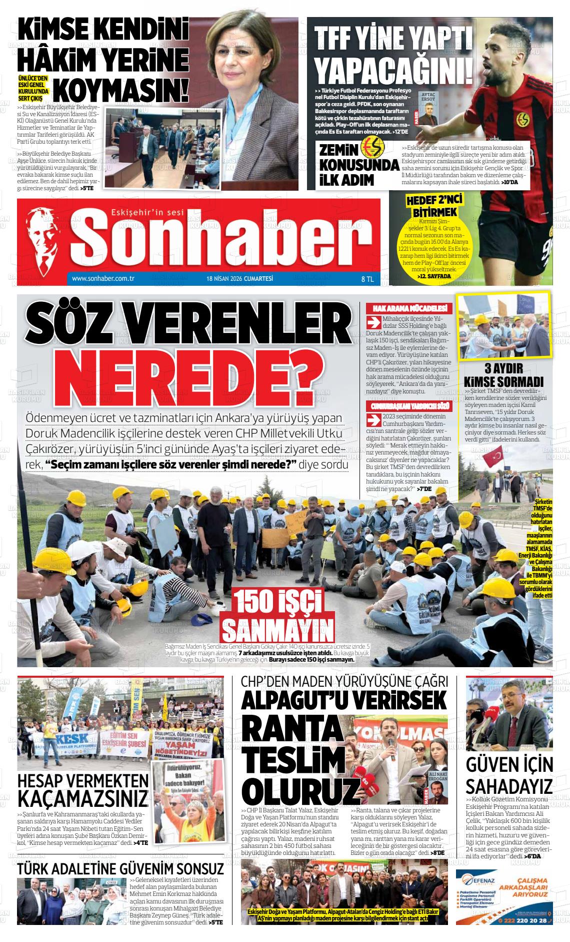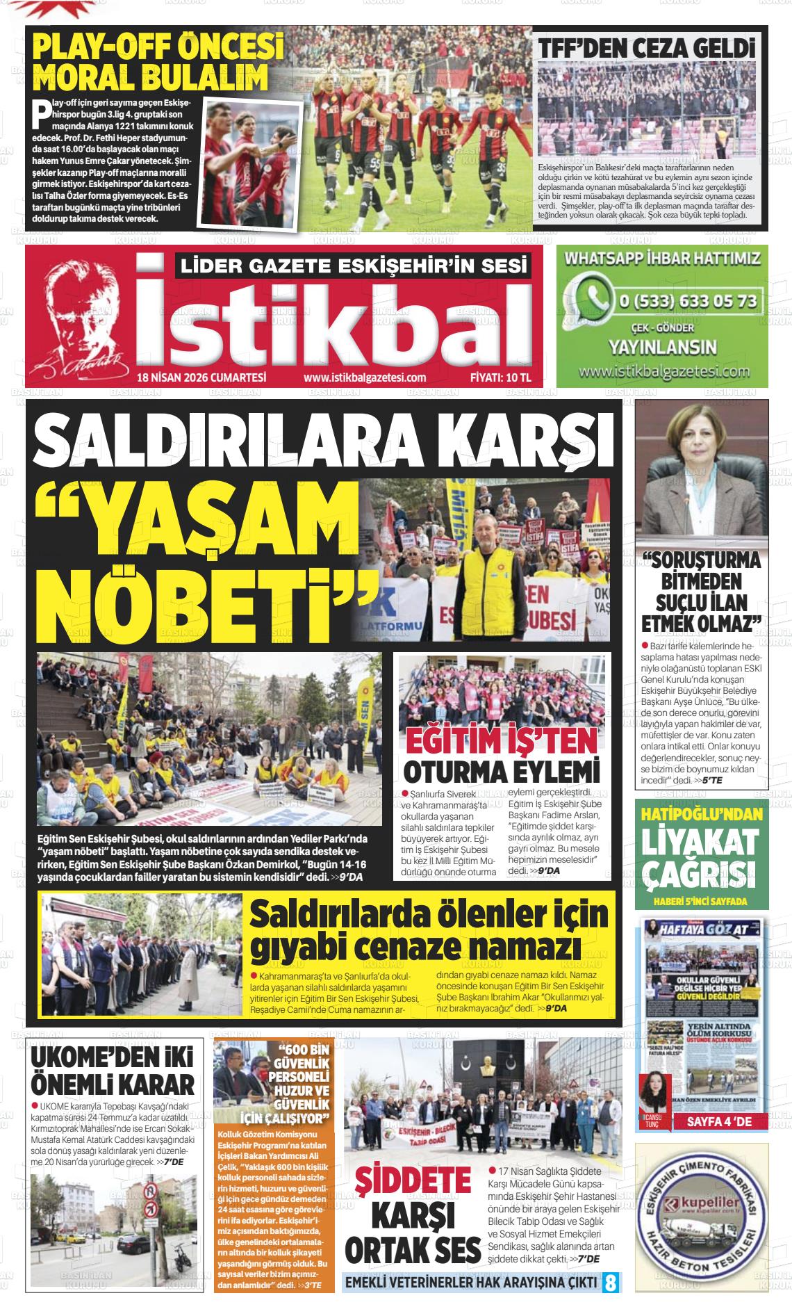 Eskİşehİr Yerel Gazeteleri 18 Nisan 2026, Cumartesi Günü Manşeti