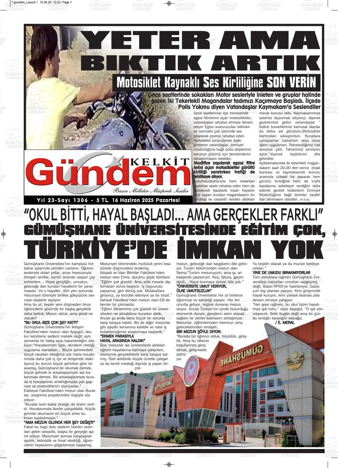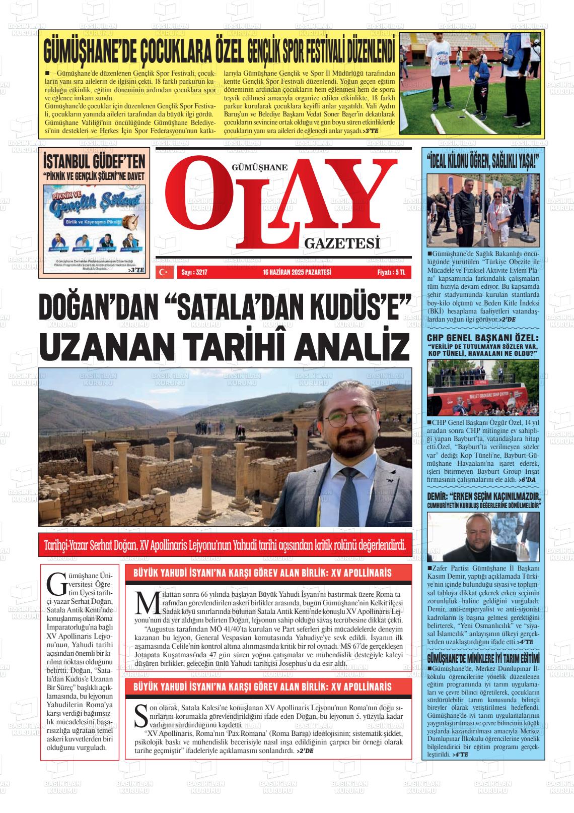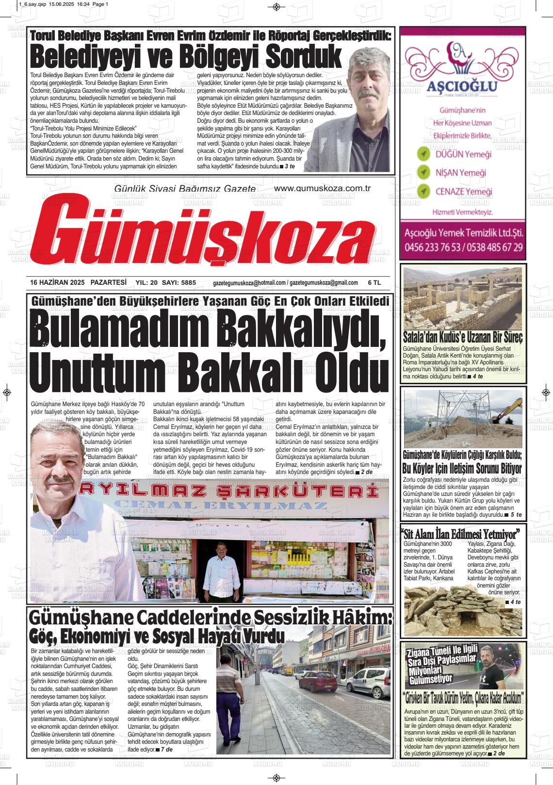 Gümüşhane Yerel Gazeteleri 18 Nisan 2026, Cumartesi Günü Manşeti