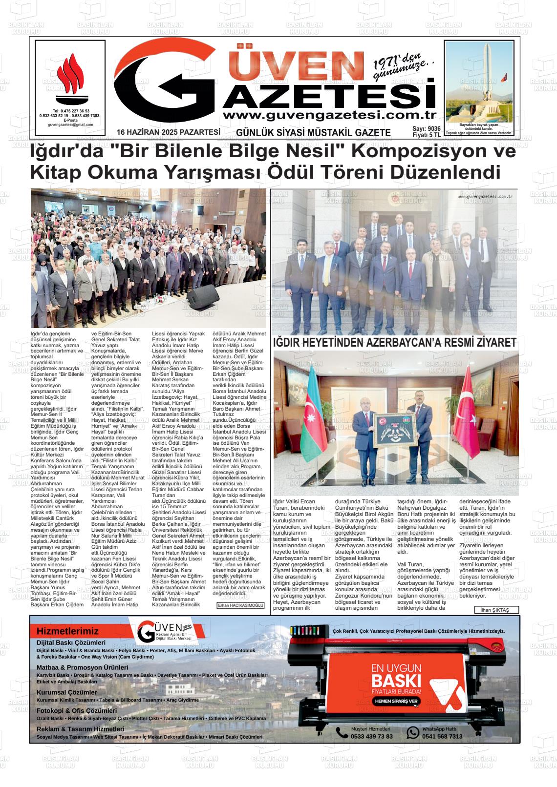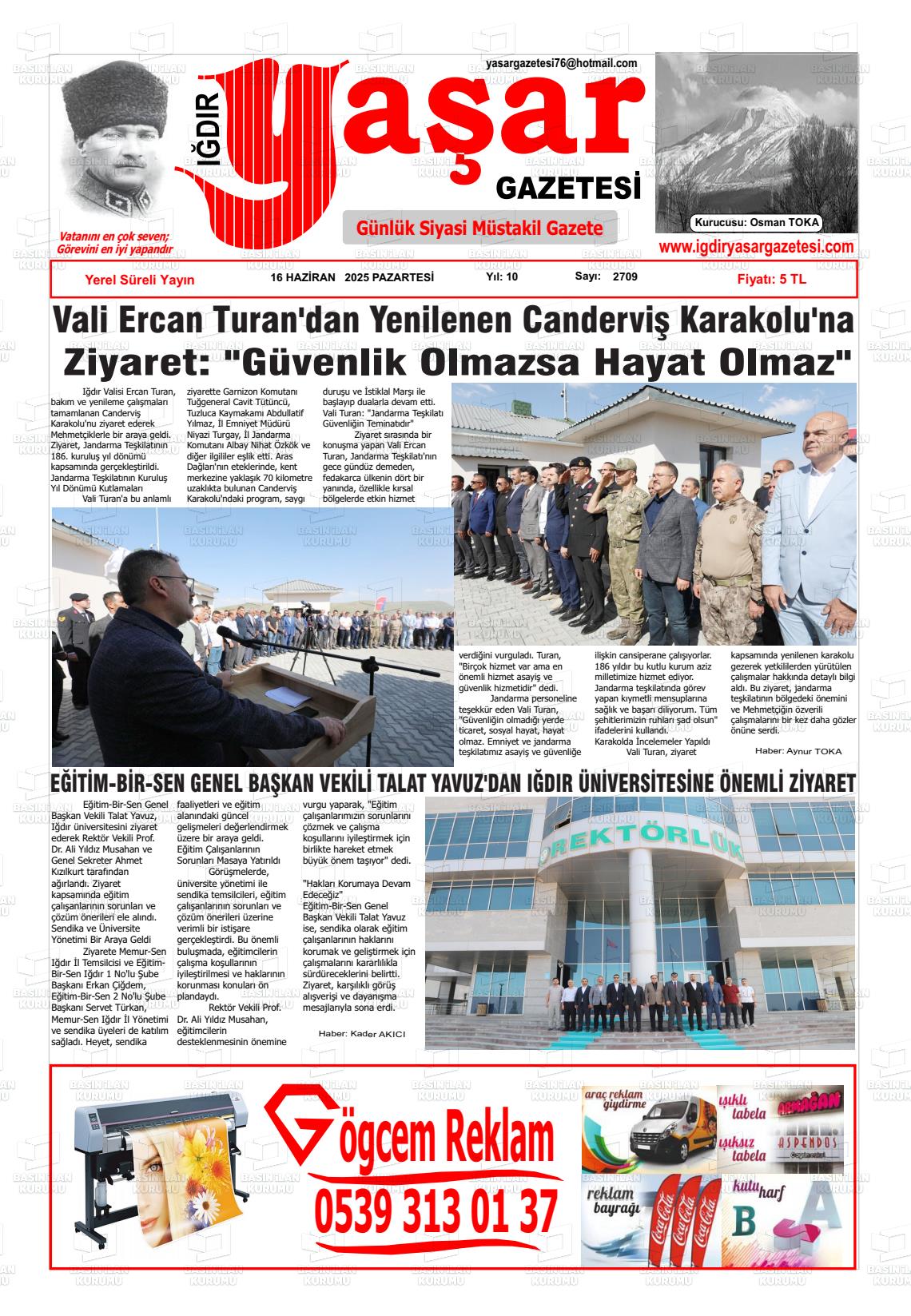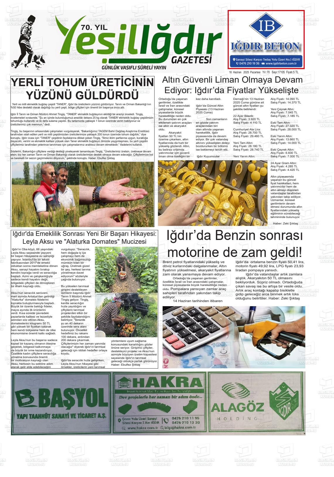 Iğdır Yerel Gazeteleri 18 Nisan 2026, Cumartesi Günü Manşeti