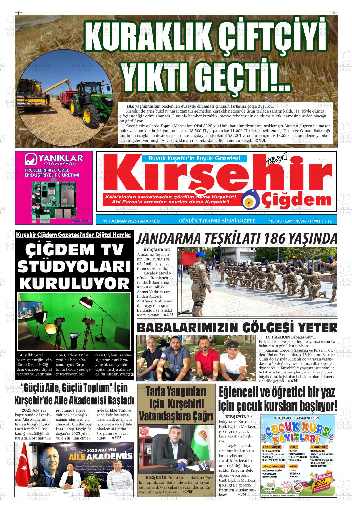 Kırşehİr Yerel Gazeteleri 18 Nisan 2026, Cumartesi Günü Manşeti