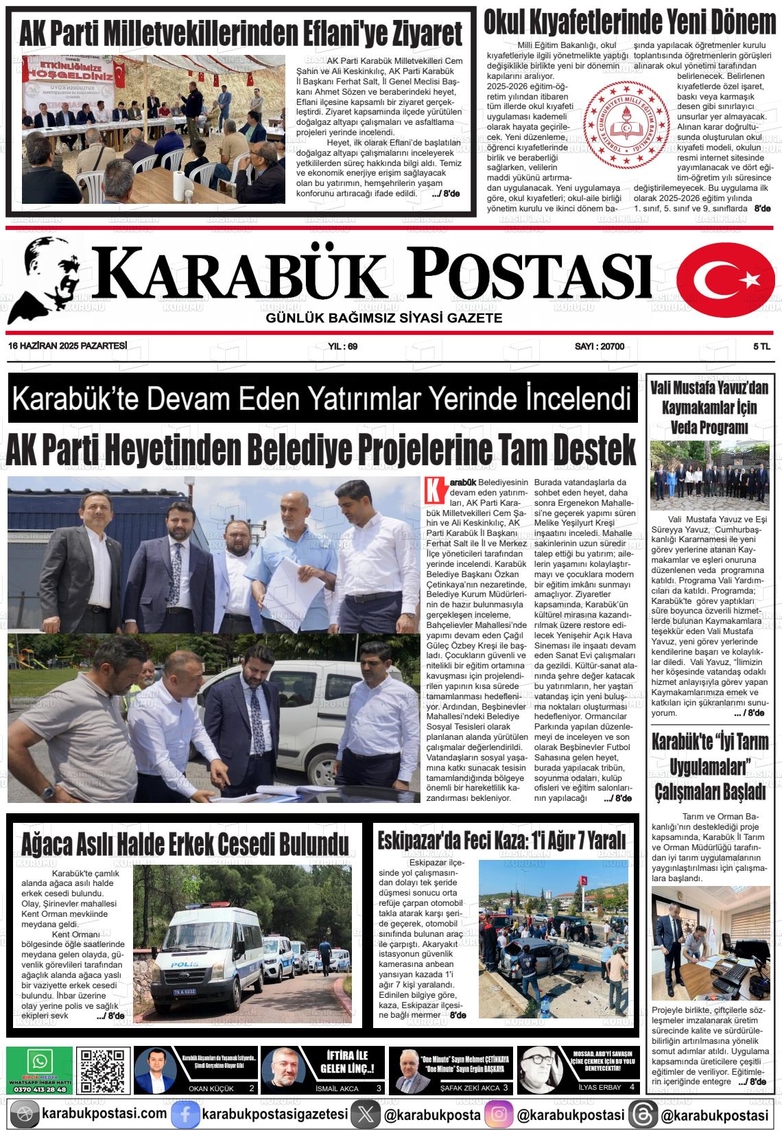 Karabük Yerel Gazeteleri 18 Nisan 2026, Cumartesi Günü Manşeti