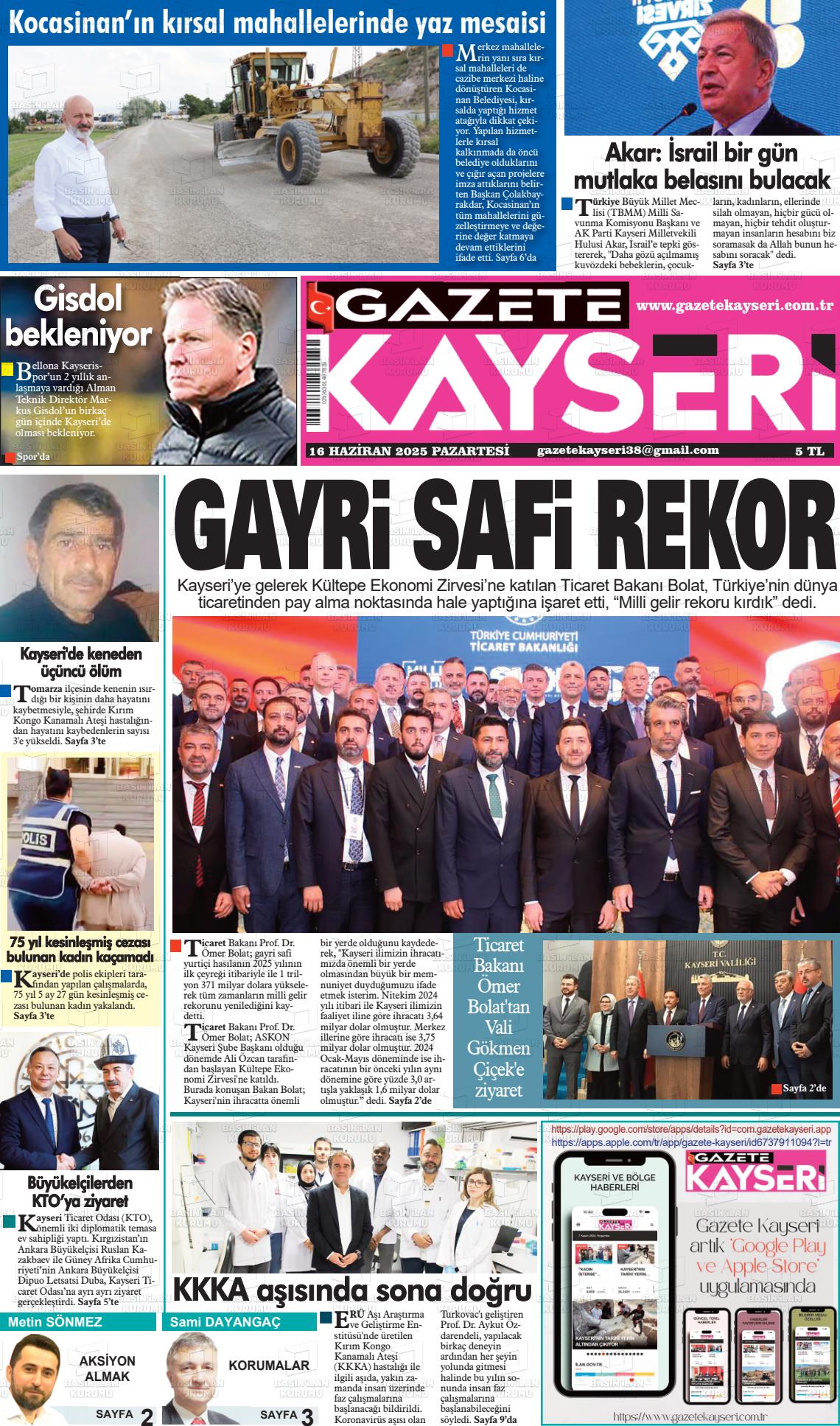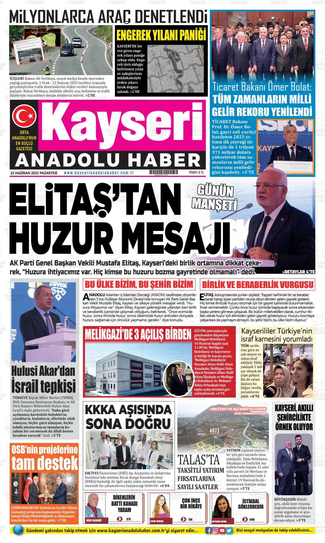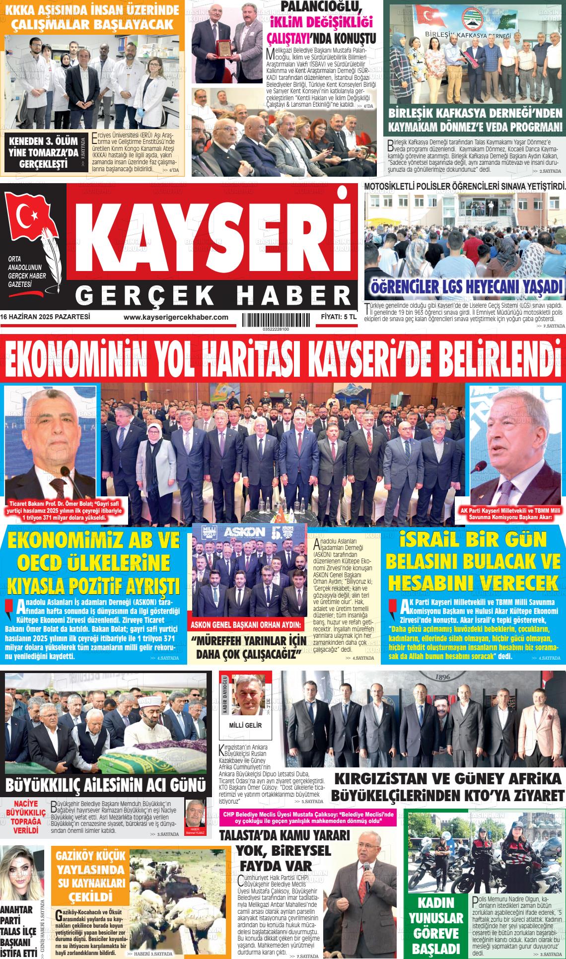 Kayserİ Yerel Gazeteleri 18 Nisan 2026, Cumartesi Günü Manşeti