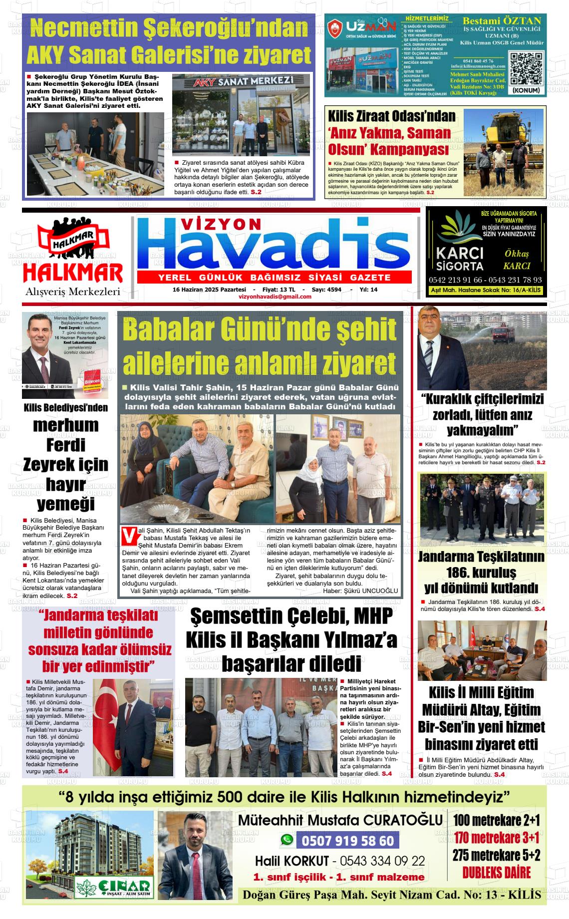 Kİlİs Yerel Gazeteleri 18 Nisan 2026, Cumartesi Günü Manşeti