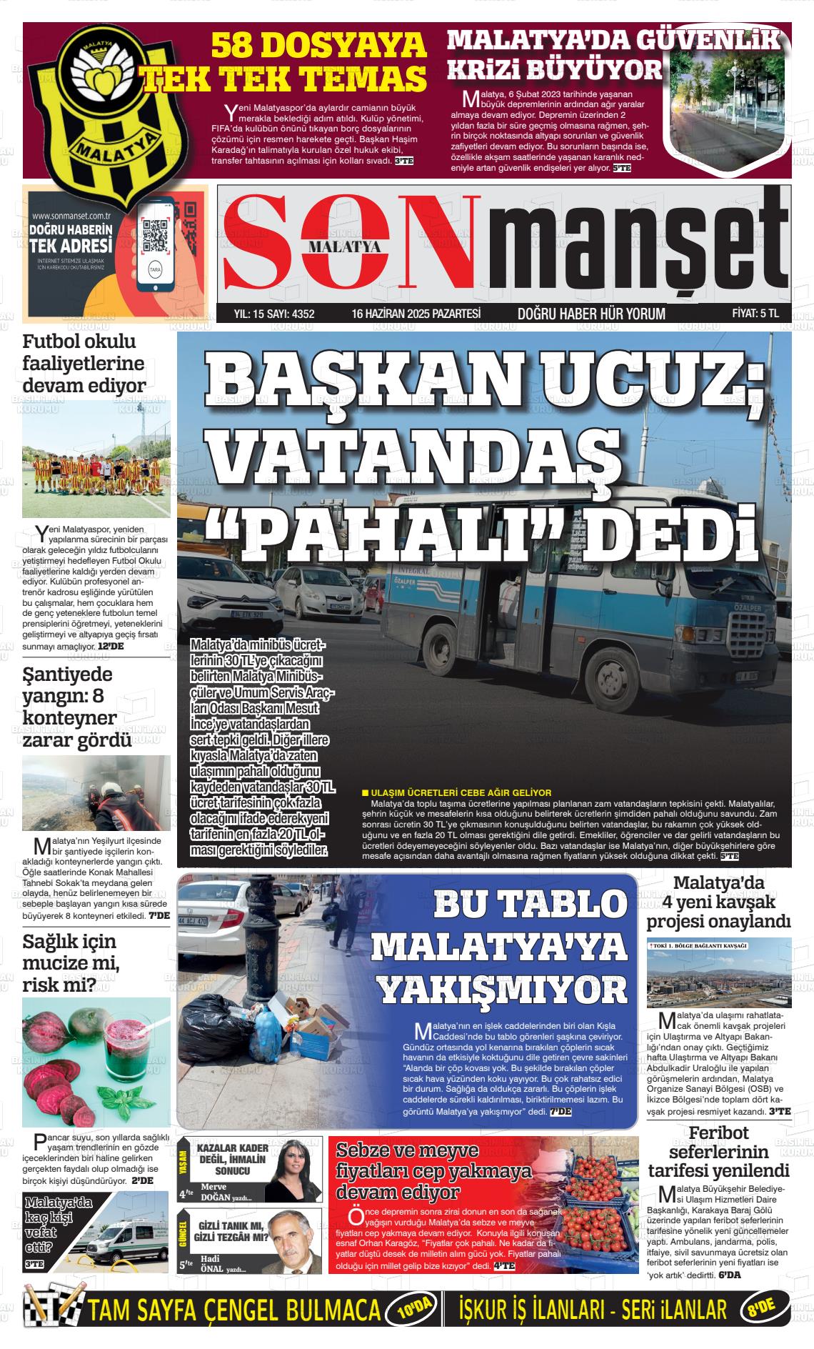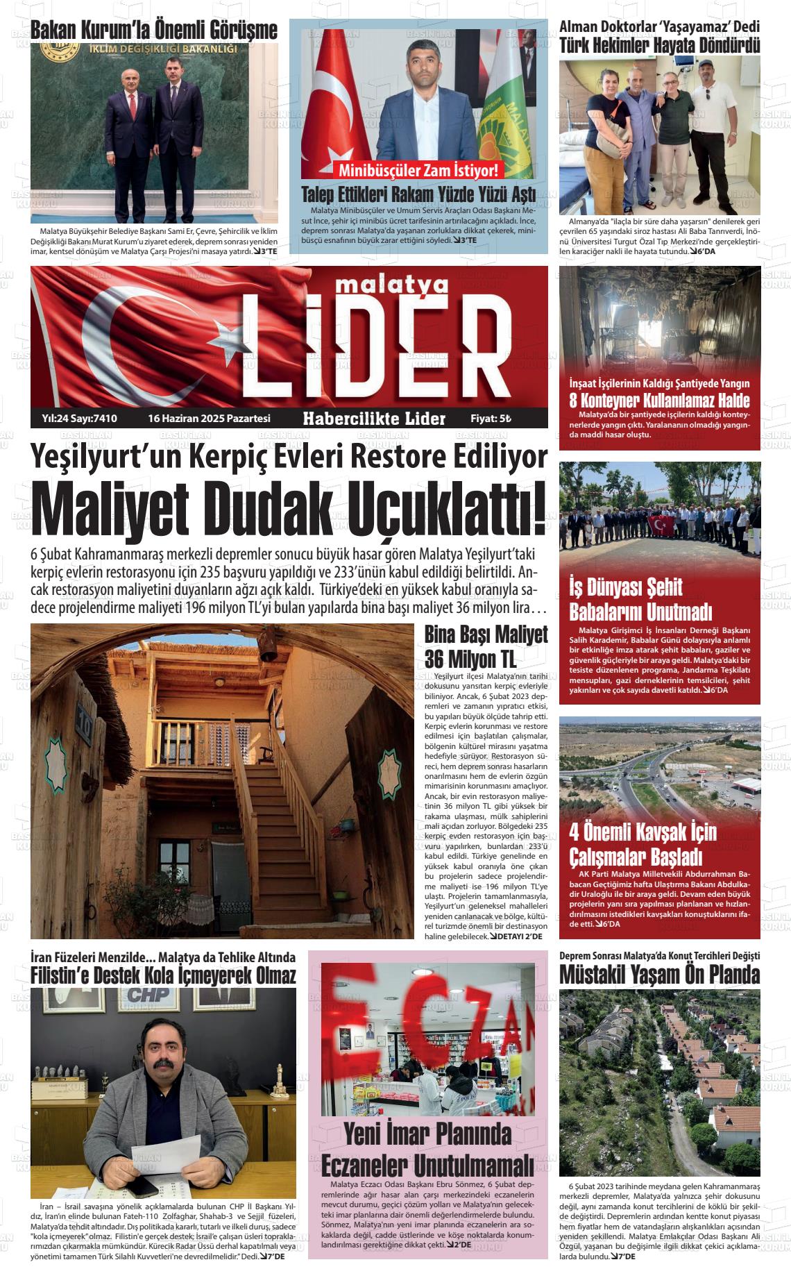 Malatya Yerel Gazeteleri 18 Nisan 2026, Cumartesi Günü Manşeti