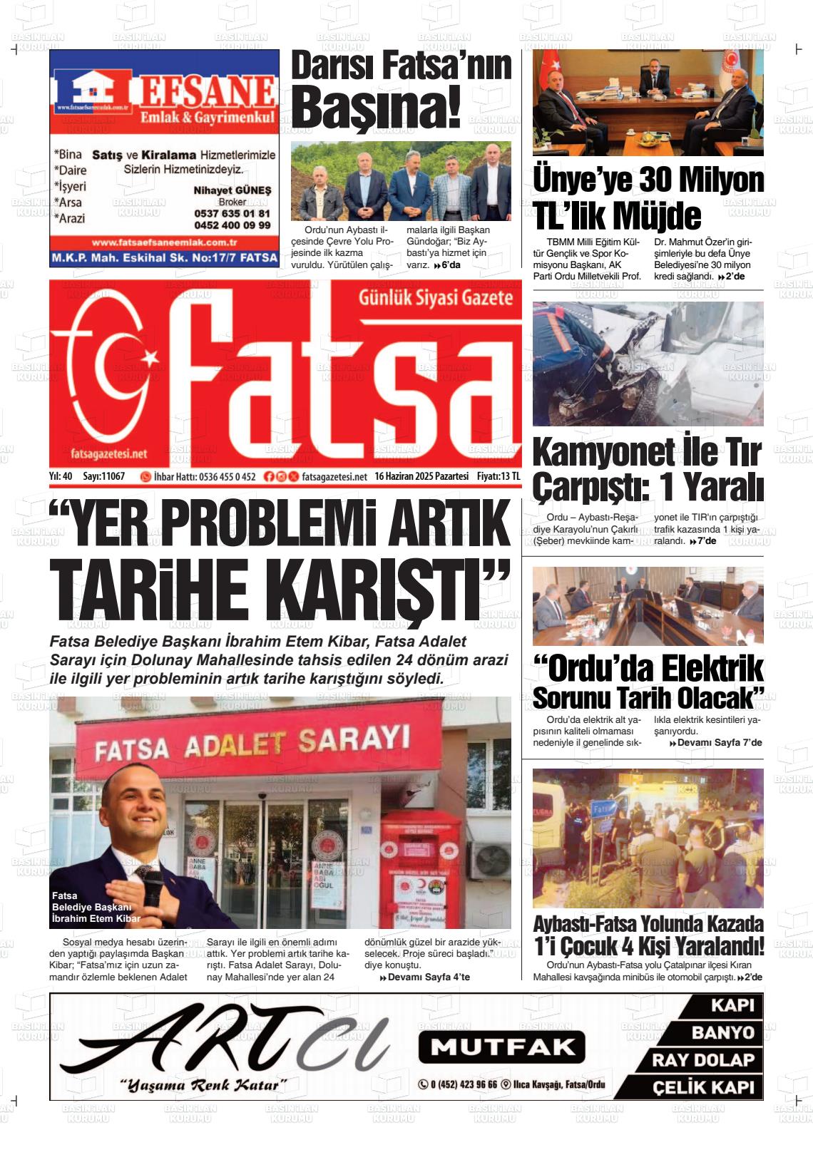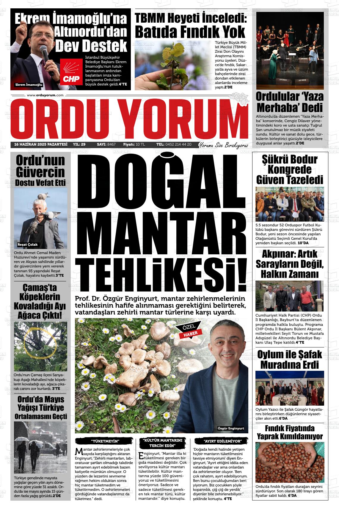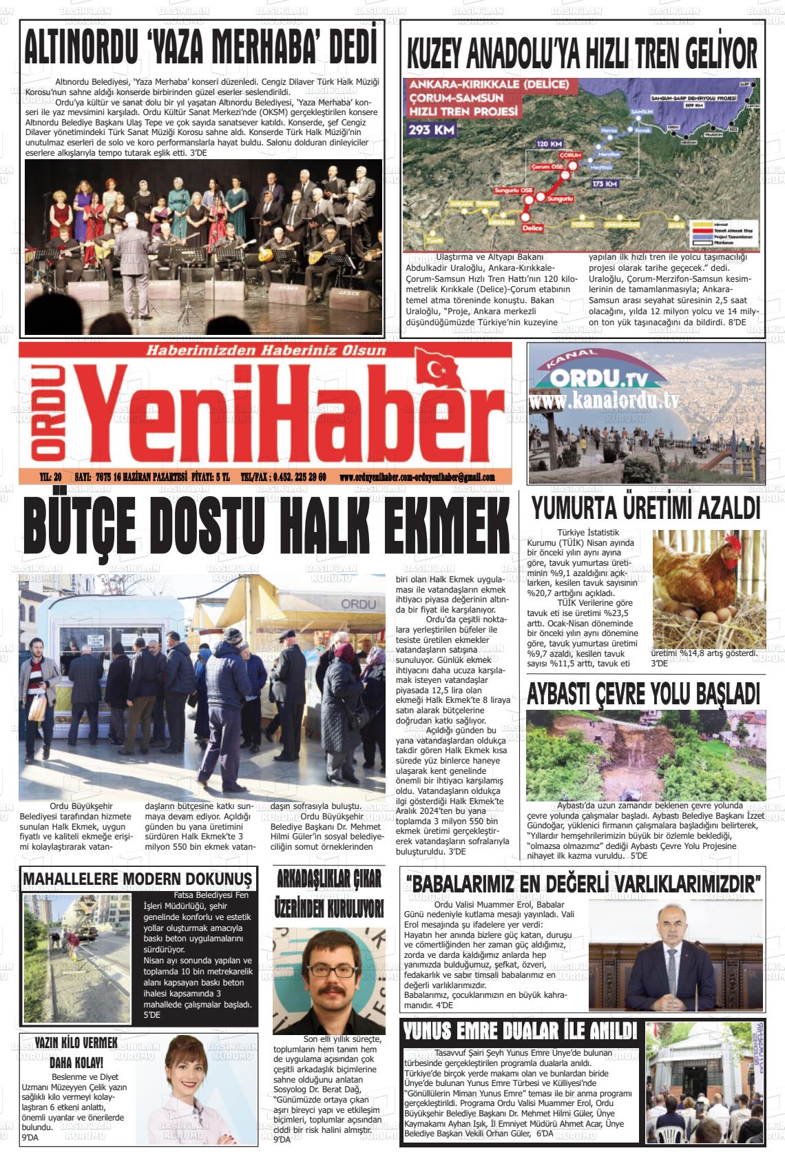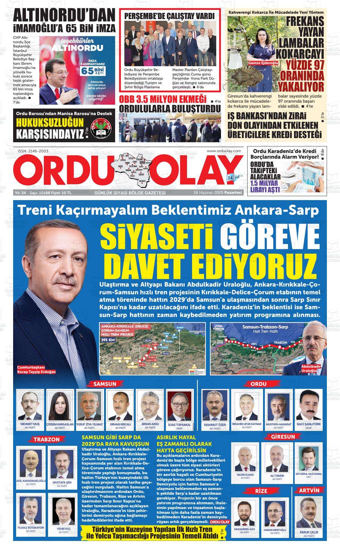 Ordu Yerel Gazeteleri 18 Nisan 2026, Cumartesi Günü Manşeti