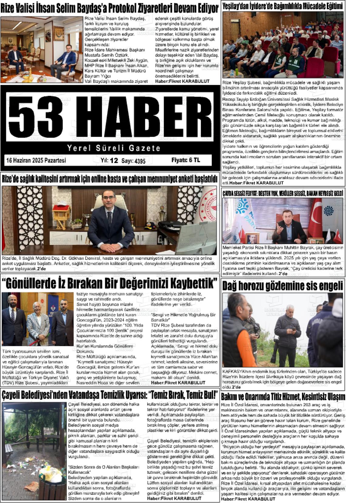 Rİze Yerel Gazeteleri 18 Nisan 2026, Cumartesi Günü Manşeti