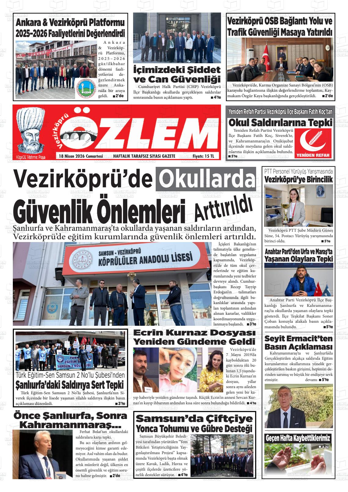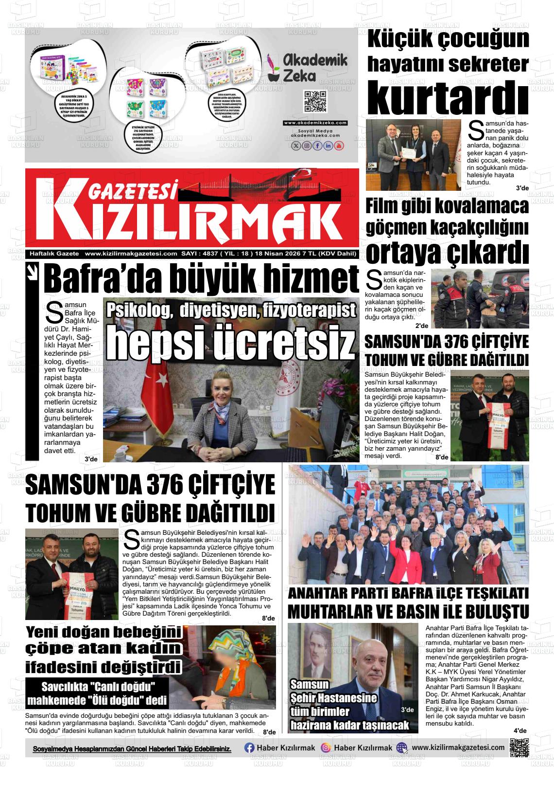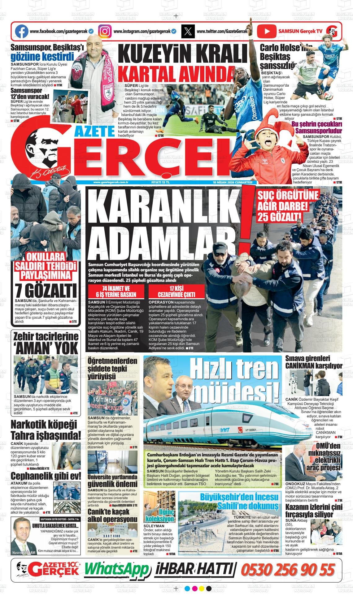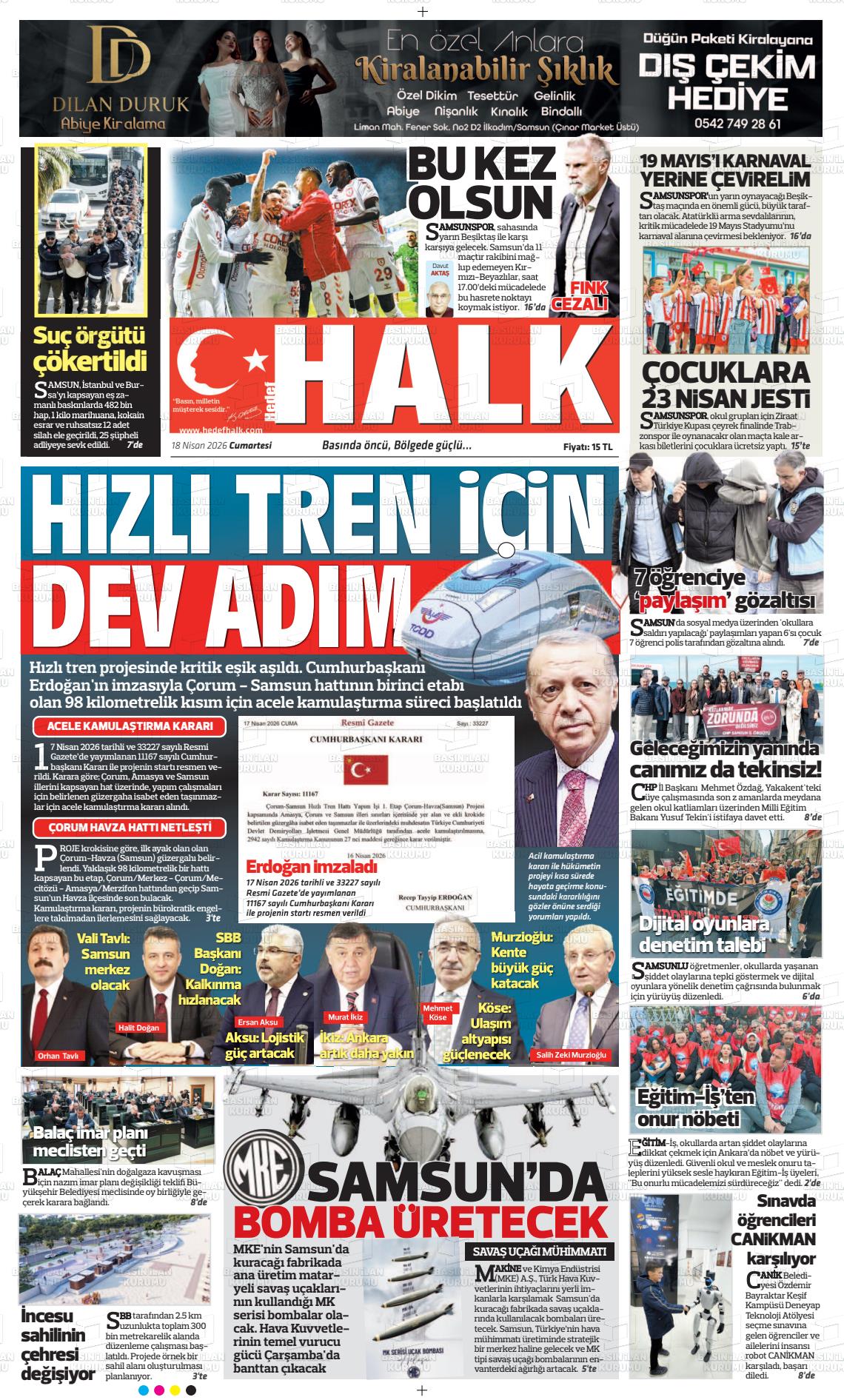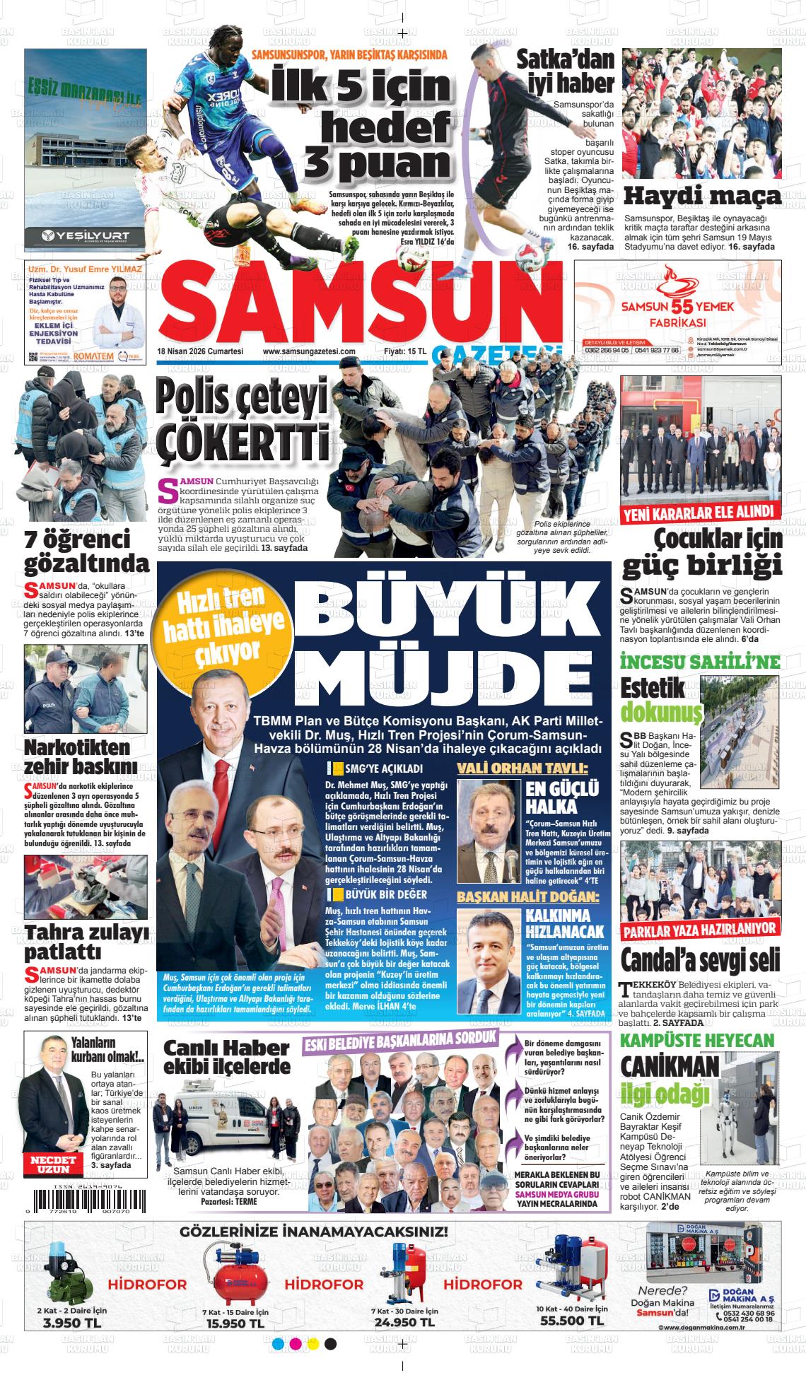 Samsun Yerel Gazeteleri 18 Nisan 2026, Cumartesi Günü Manşeti
