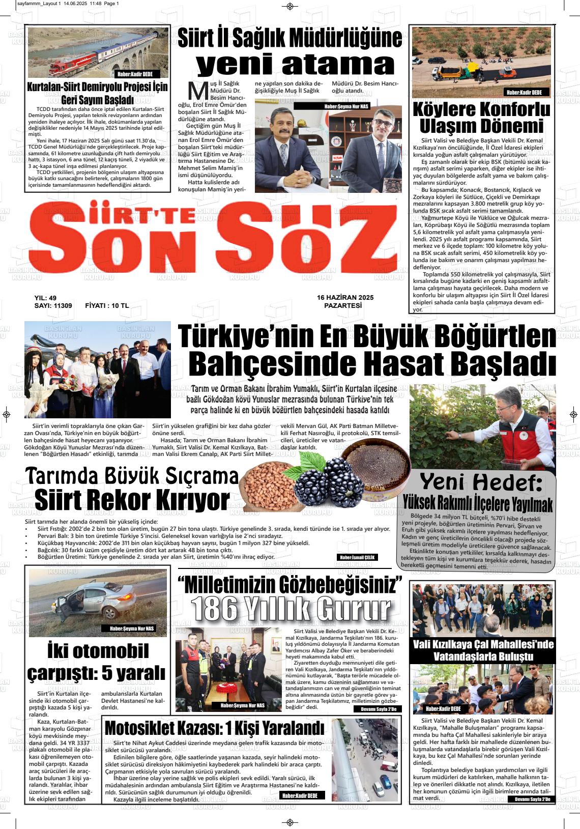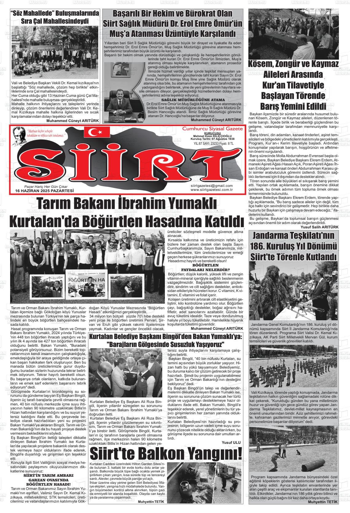 Sİİrt Yerel Gazeteleri 18 Nisan 2026, Cumartesi Günü Manşeti