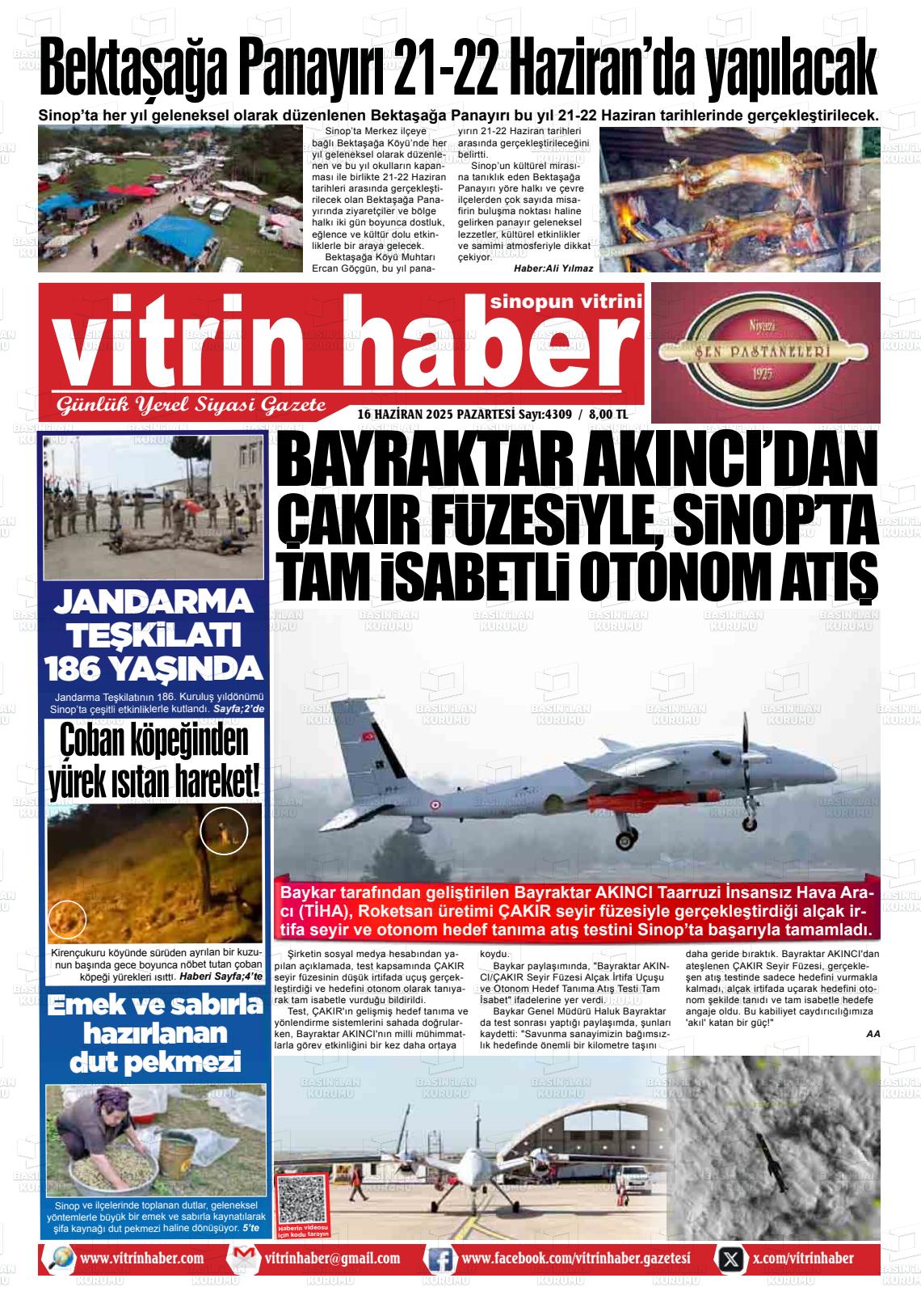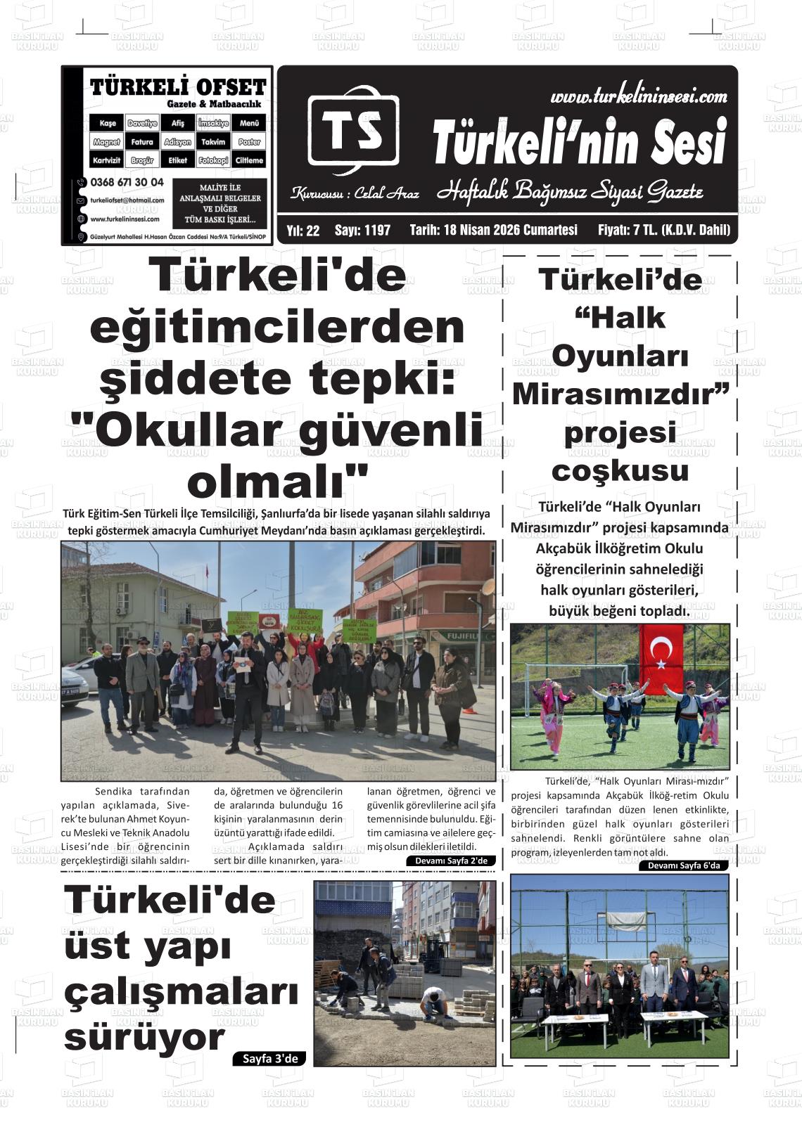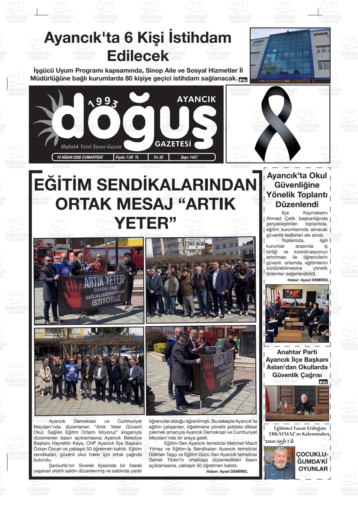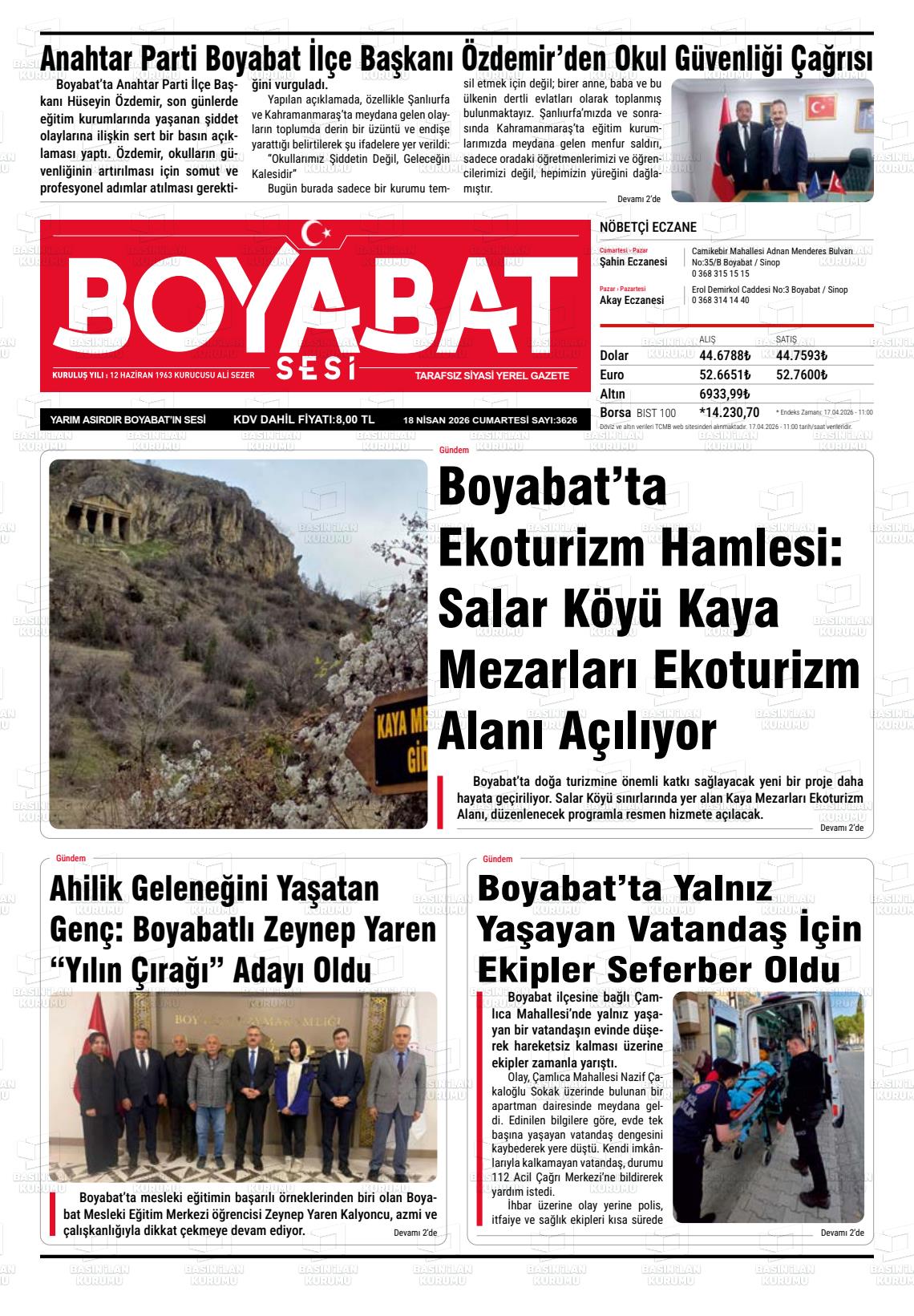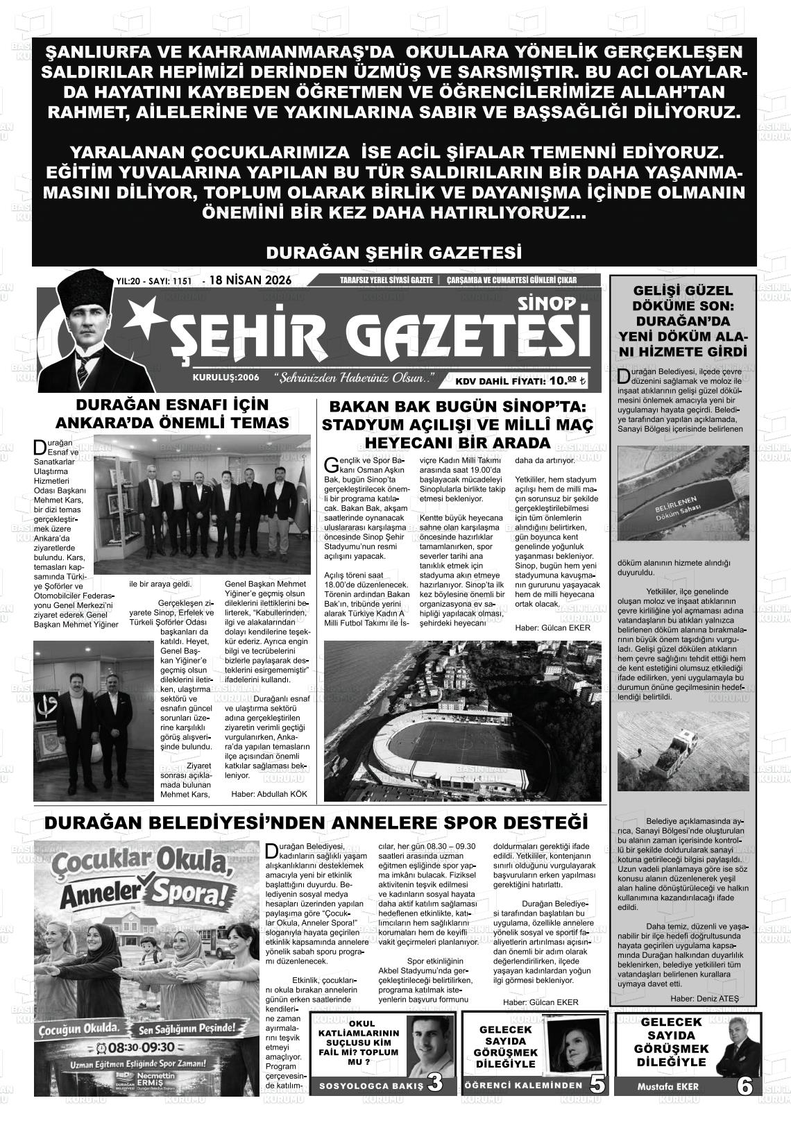 Sİnop Yerel Gazeteleri 18 Nisan 2026, Cumartesi Günü Manşeti