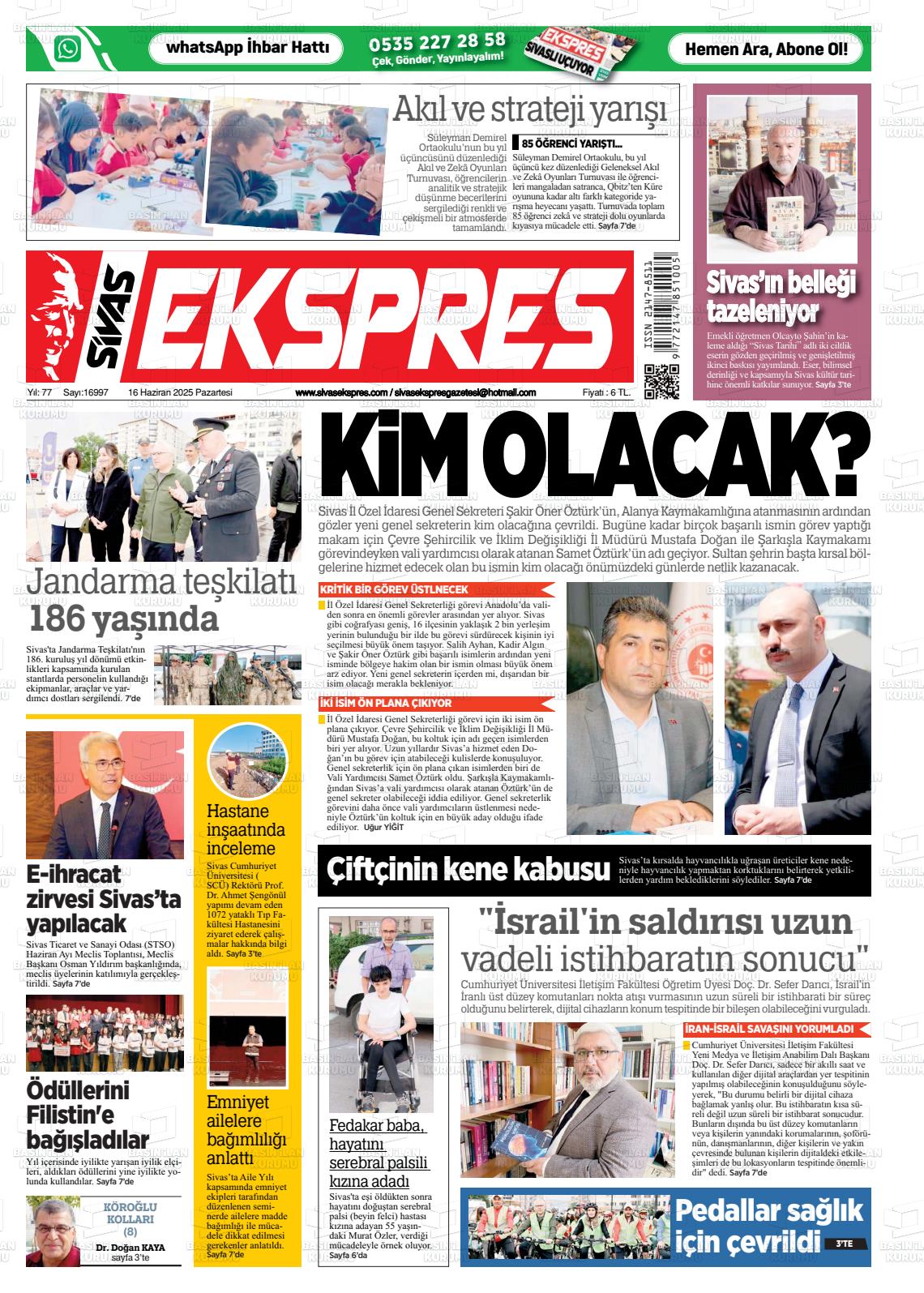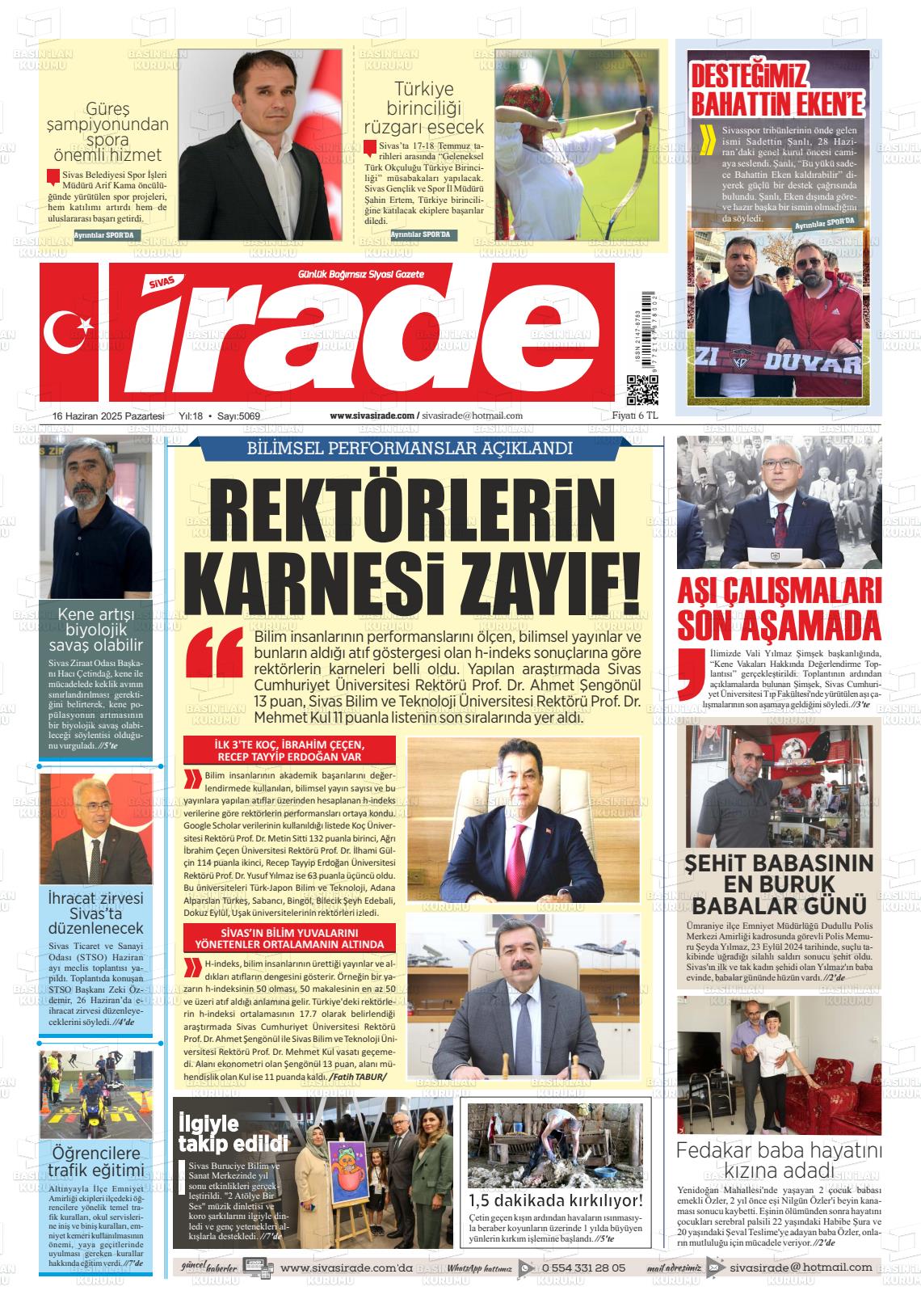 Sİvas Yerel Gazeteleri 18 Nisan 2026, Cumartesi Günü Manşeti
