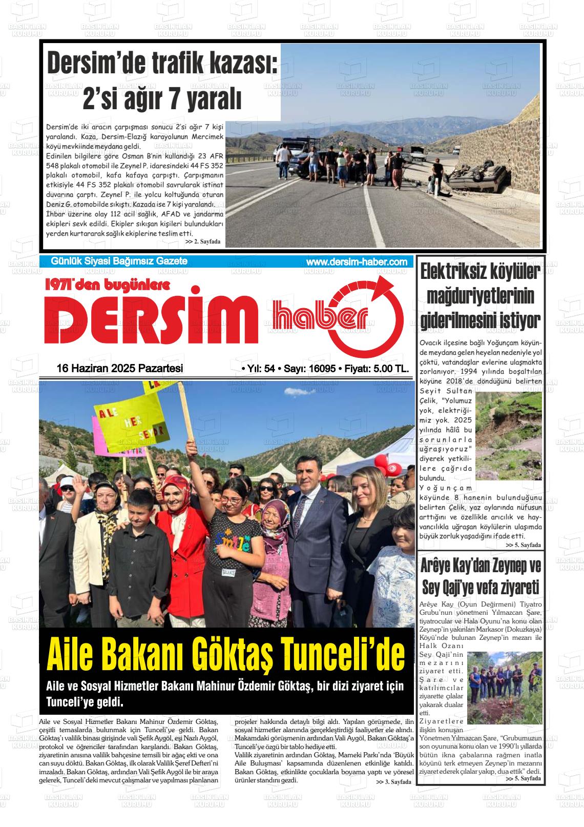 Tuncelİ Yerel Gazeteleri 18 Nisan 2026, Cumartesi Günü Manşeti