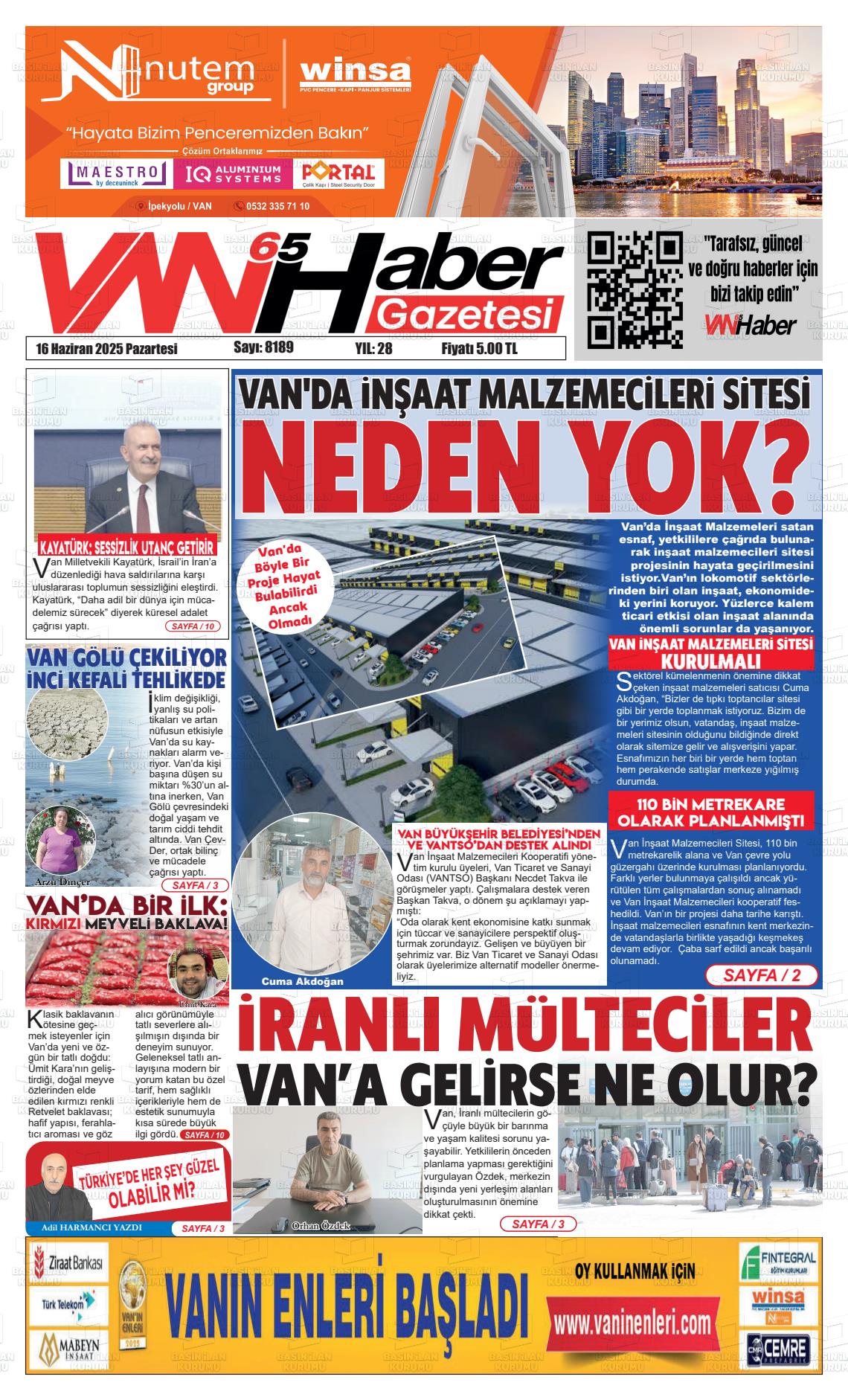 Van Yerel Gazeteleri 18 Nisan 2026, Cumartesi Günü Manşeti