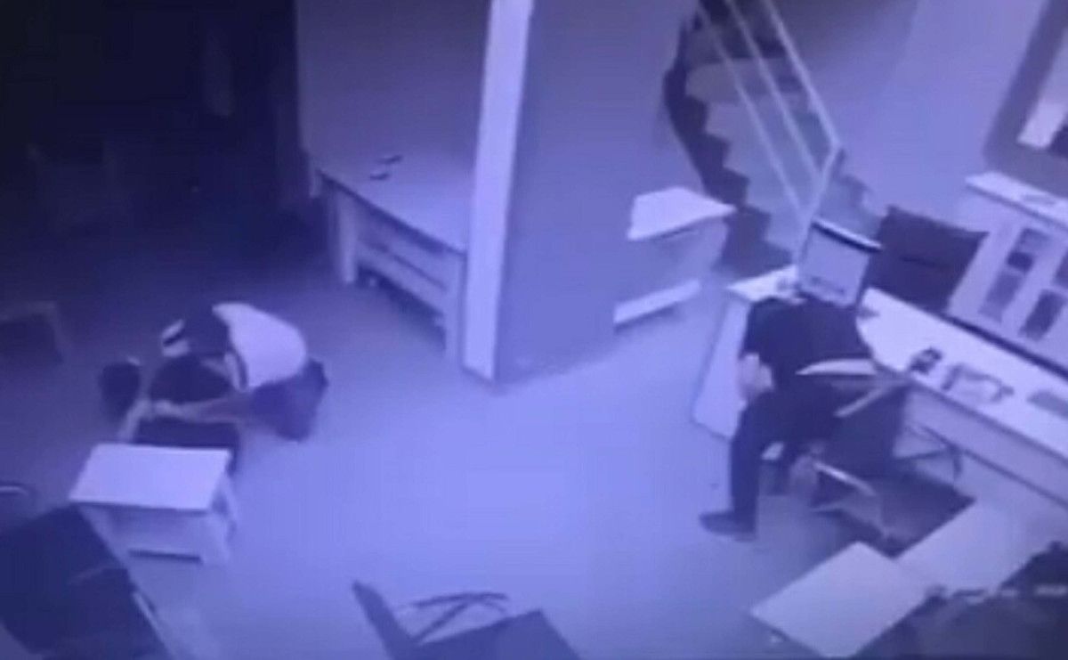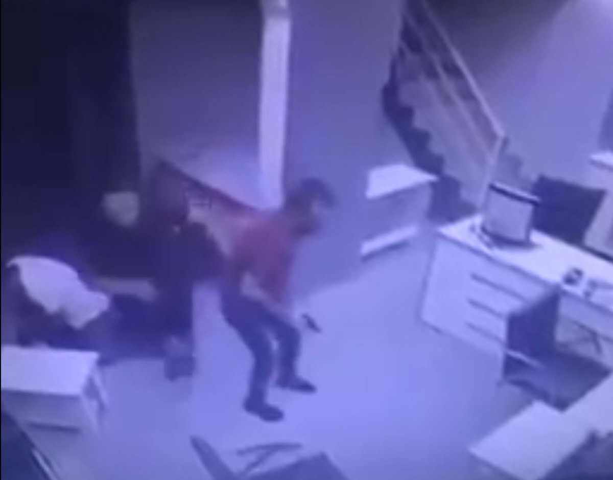 Görüntülerde ofis içerisindeki tartışmanın bir anda silahlı çatışmaya dönüştüğü, panik halinde insanların dışarı kaçtığı görüldü.