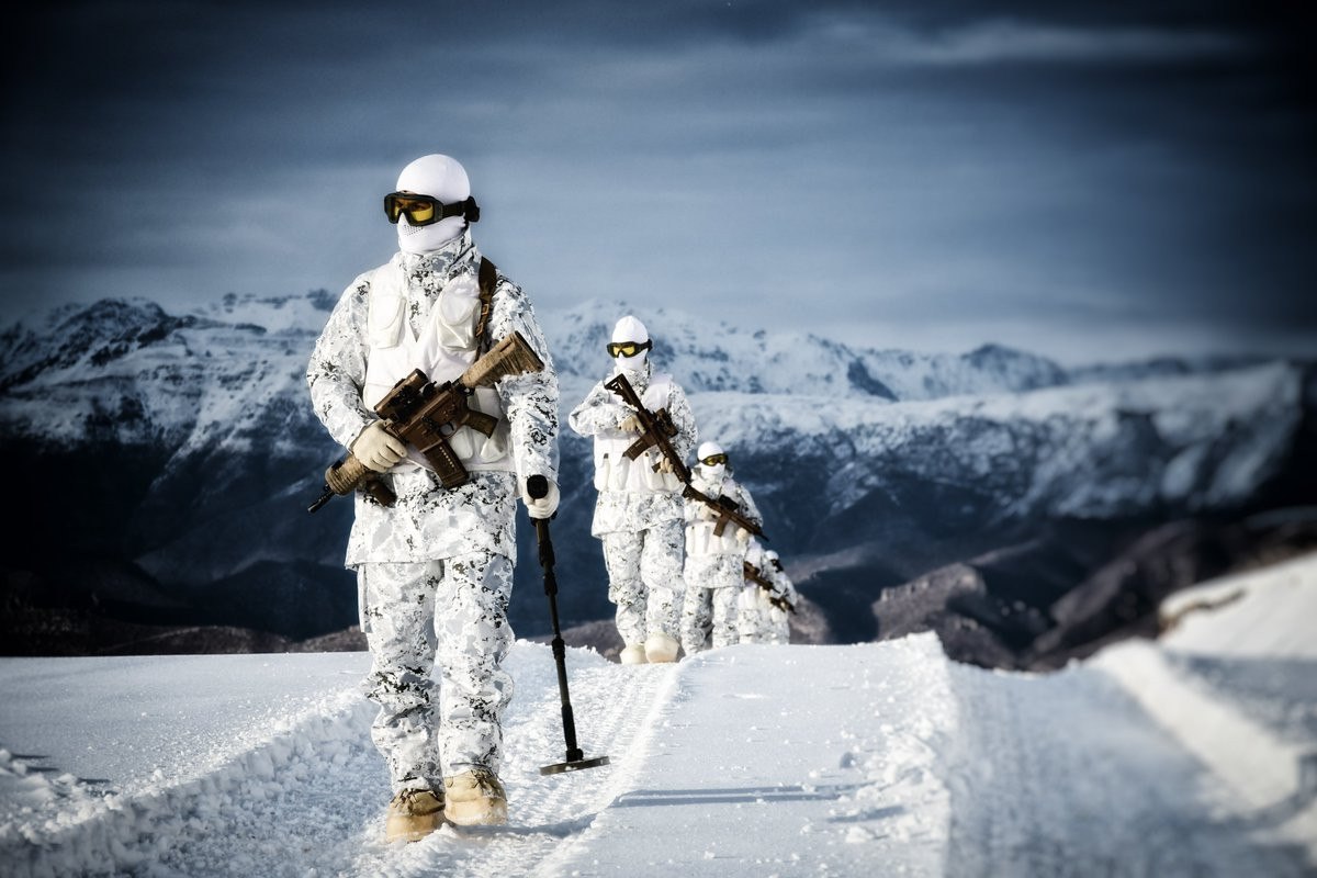 Vatan savunmasında zorlu koşullara da göğüs geren Mehmetçik, öyle ki karlı dağlarda, sırtlarında yükleriyle gözlerini bile kırpmıyorlar.