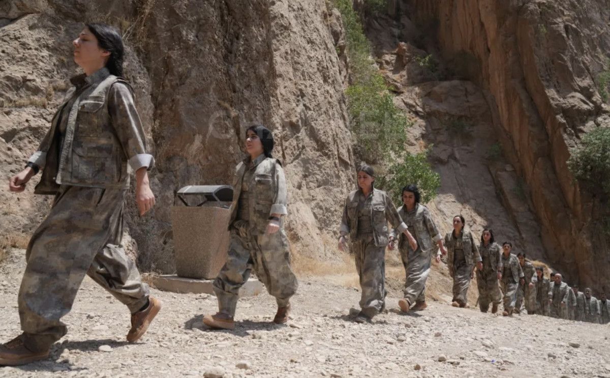 PKK’dan bir grup, Irak’ın Süleymaniye kentinde silahlarını içinde ateş bulunan büyük bir kazana atarak imha etti.