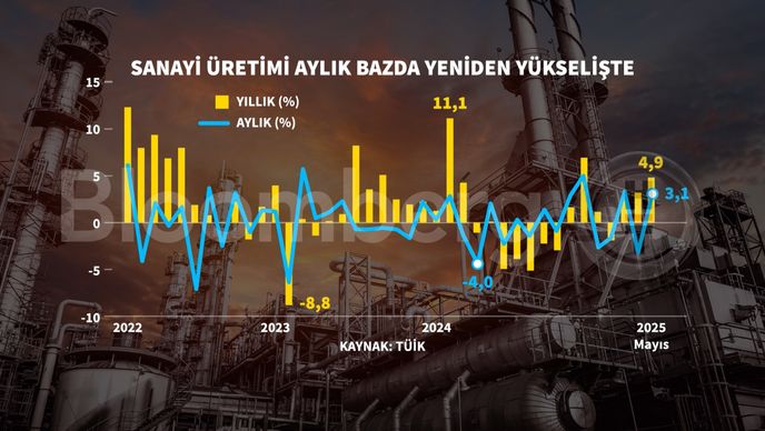 TÜİK’in açıkladığı datalarına nazaran sanayi üretimi aylık bazda yüzde 3,1, yıllık bazda ise yüzde 4,9 arttı. Bu, 2025’teki en yüksek yıllık artış oldu.